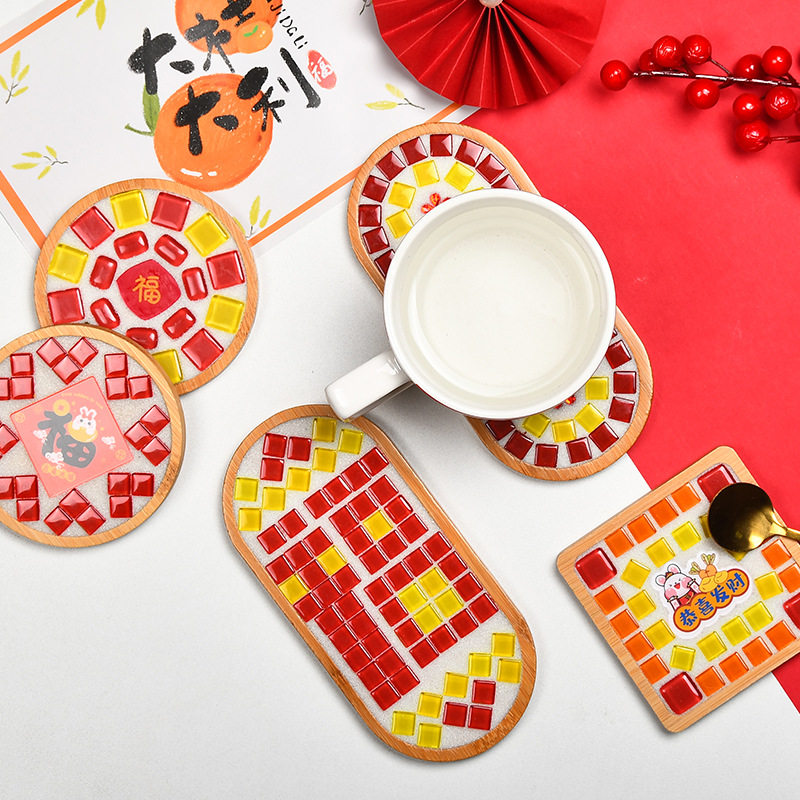 新年手工diy马赛克杯垫材料包暖场活动春节手工亲子手工活动