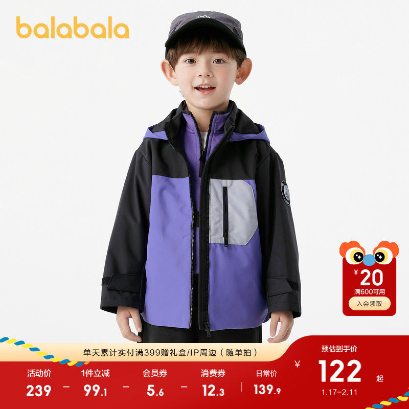 【奥特曼IP】巴拉巴拉童装男童外套秋装连帽上衣防风防水透湿拼接