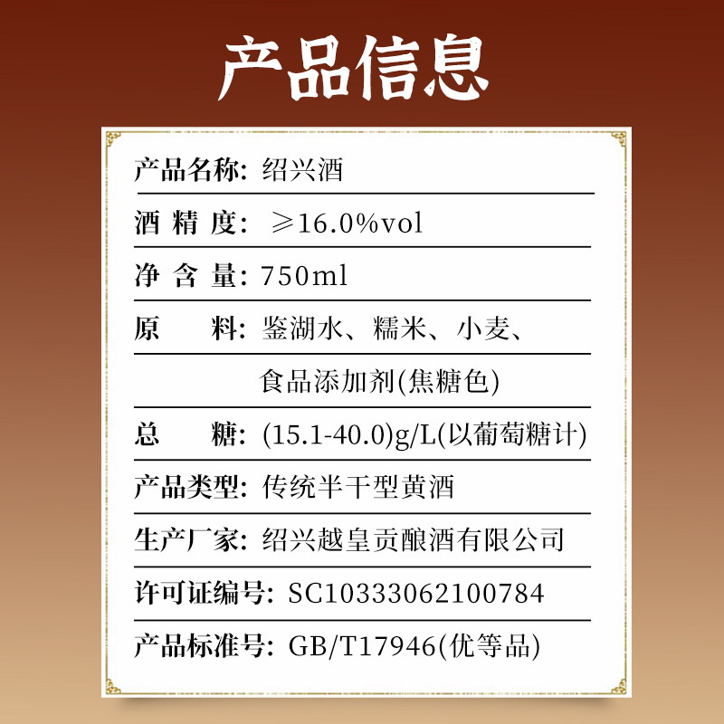 绍兴黄酒750ml*12礼盒装老酒原酒特用高档送礼十年陈酿酿酒干型