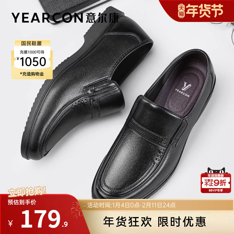 意尔康男鞋真皮韩版春秋商务休闲鞋内增高百搭低帮平底上班单皮鞋