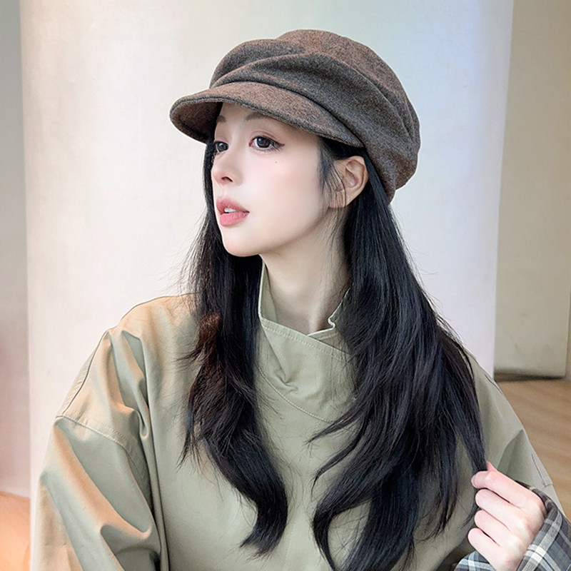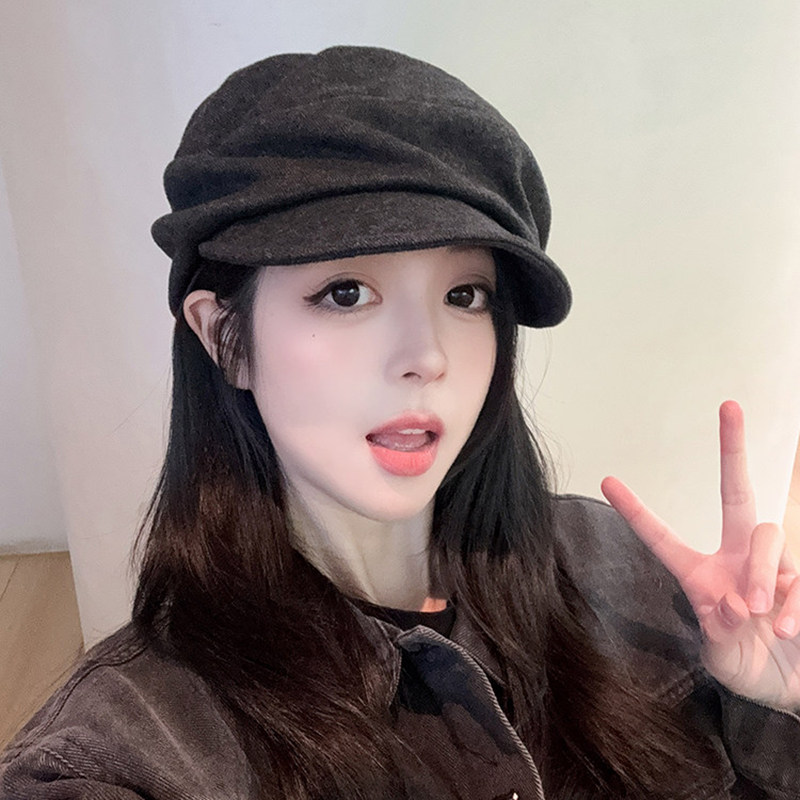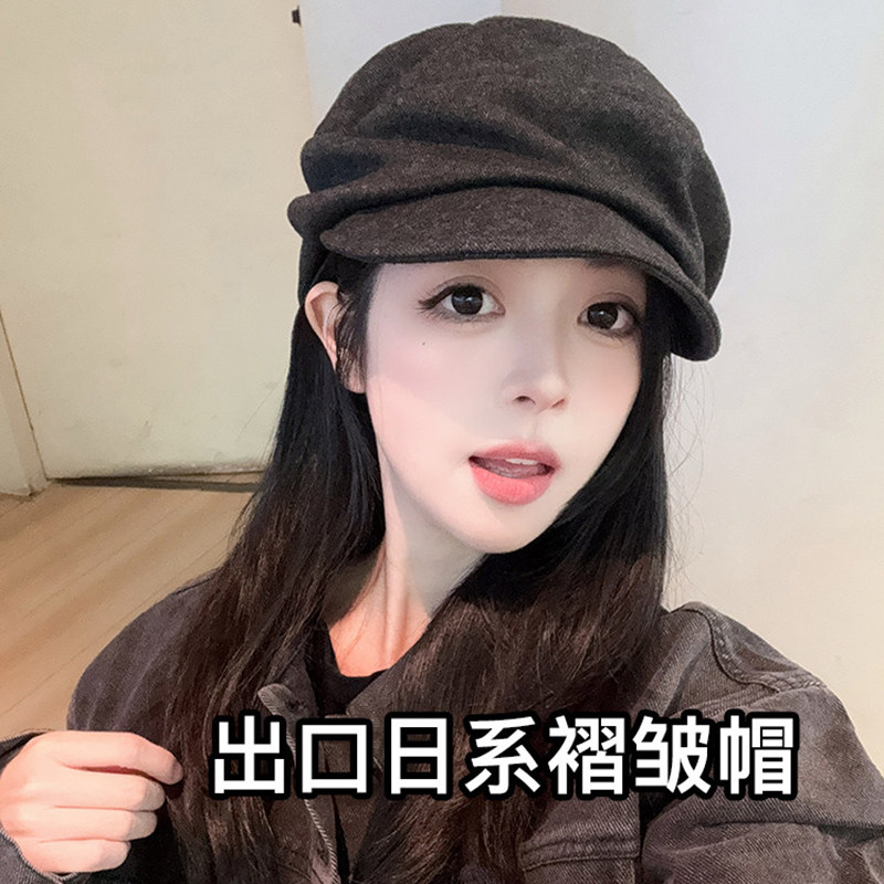 Classy key新加坡设计师联名款平顶褶皱山本风帽子文艺鸭舌报童帽