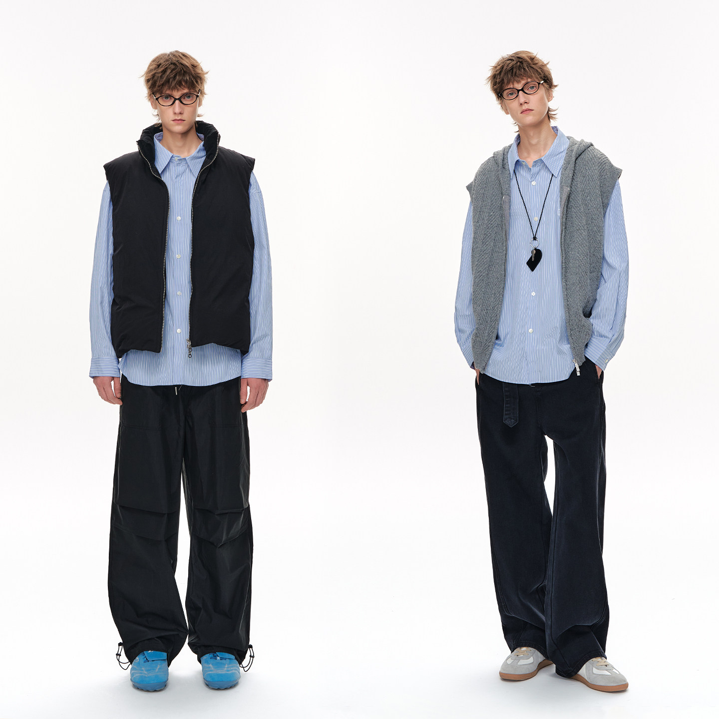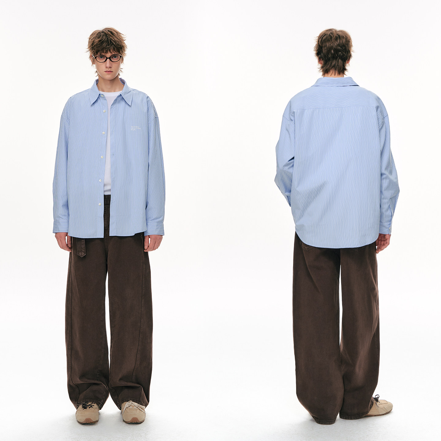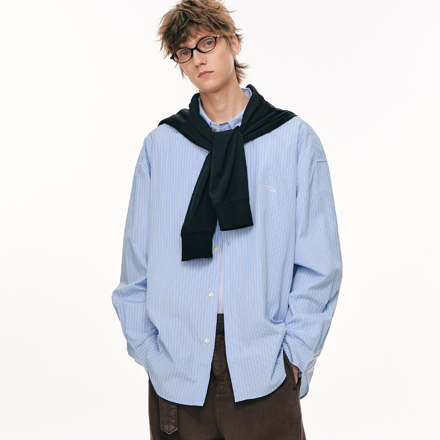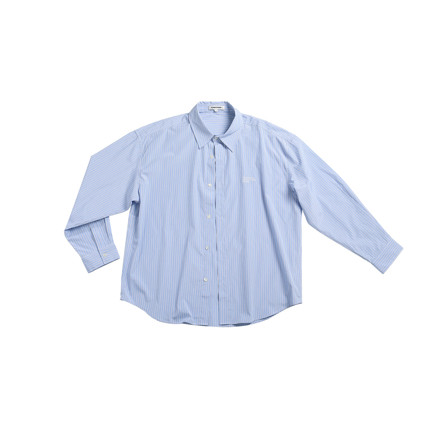CLIMAX VISION经典蓝白色织条纹字母刺绣慵懒风宽松廓形长袖衬衫
