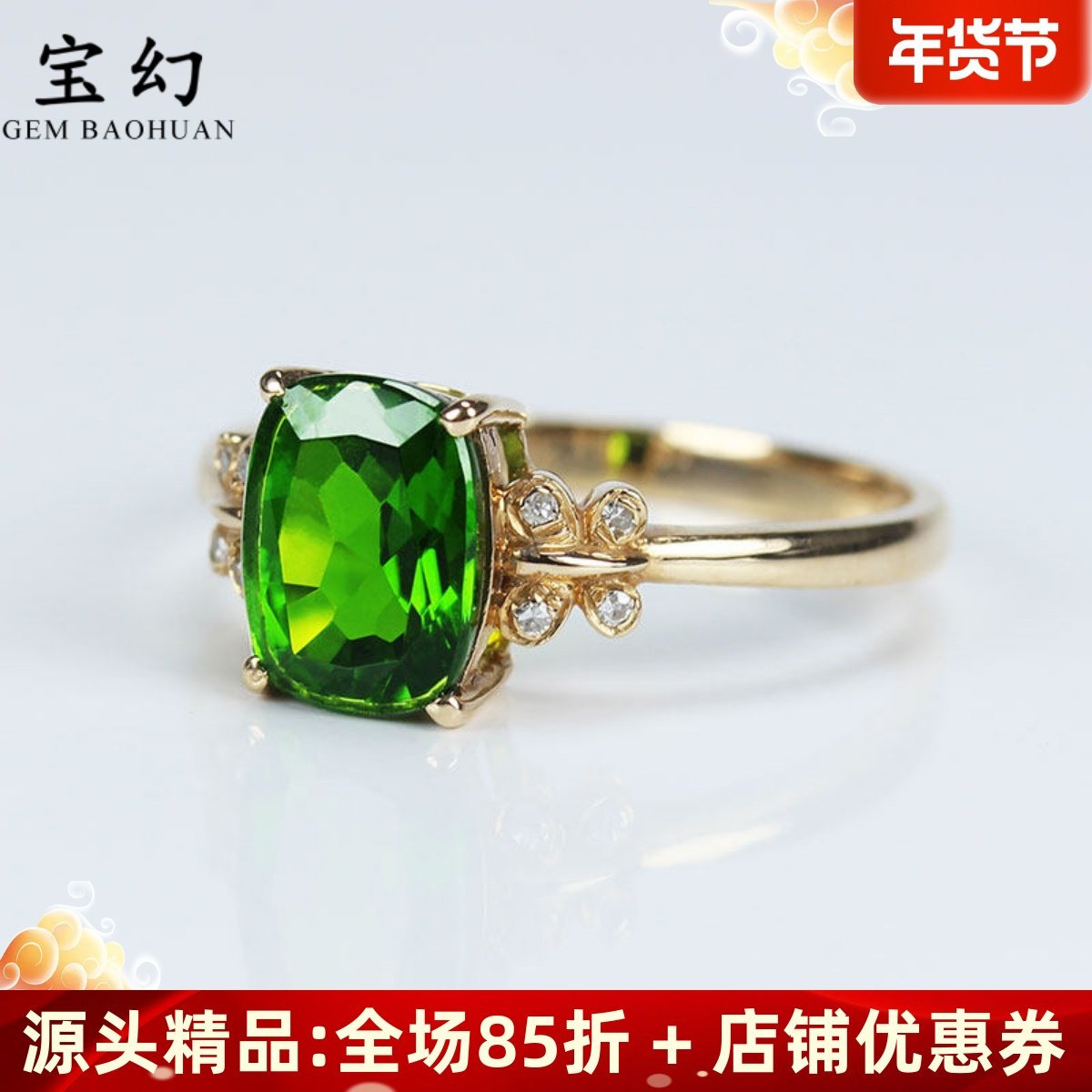 18k玫瑰金伴钻石天然透辉石戒指 电光绿宝石蝴蝶女款小清新超值