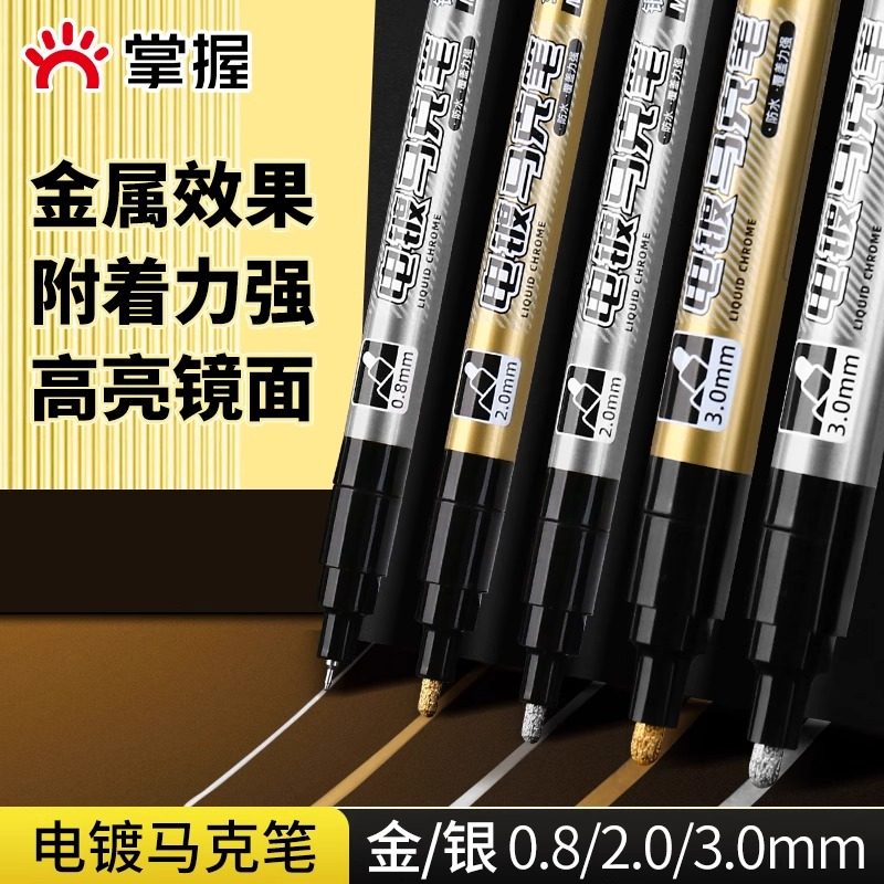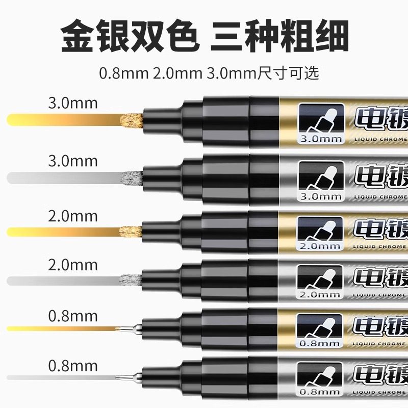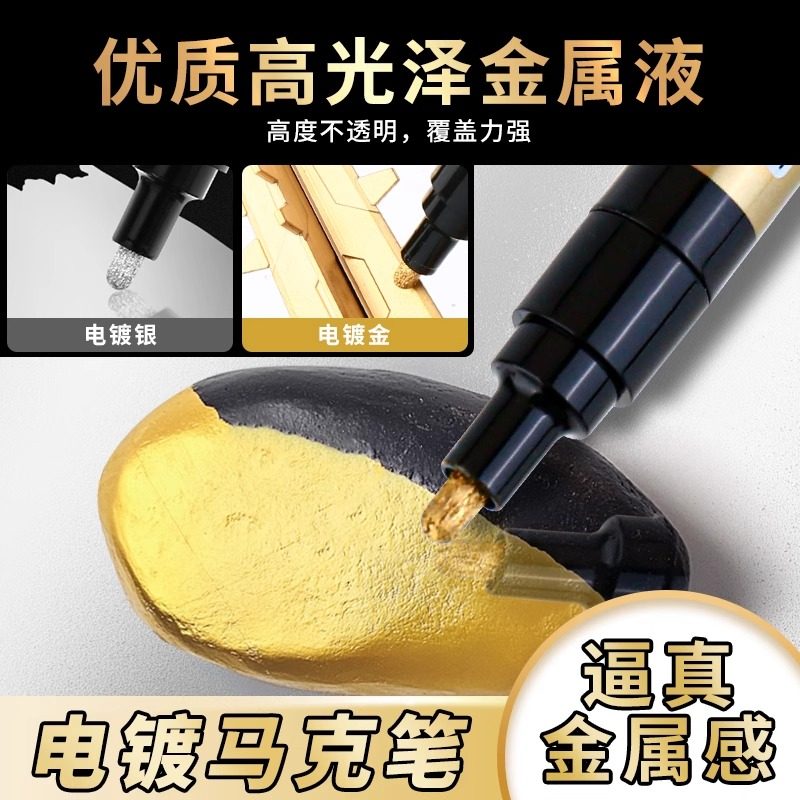 掌握0.8极细金色笔高光不褪色防水防油工业油漆笔电镀马克笔加粗3.0银色金属电镀笔高达模型补色补漆改色