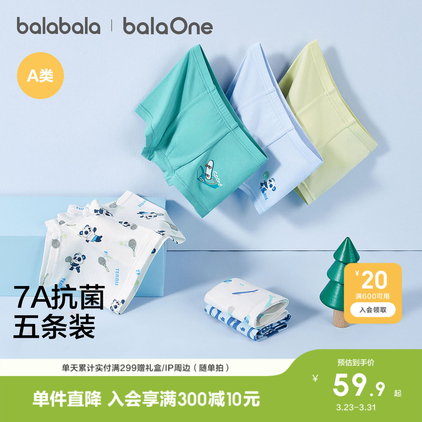 【balaOne】巴拉巴拉儿童内裤棉男童不夹pp抗菌裆四角短裤三条装