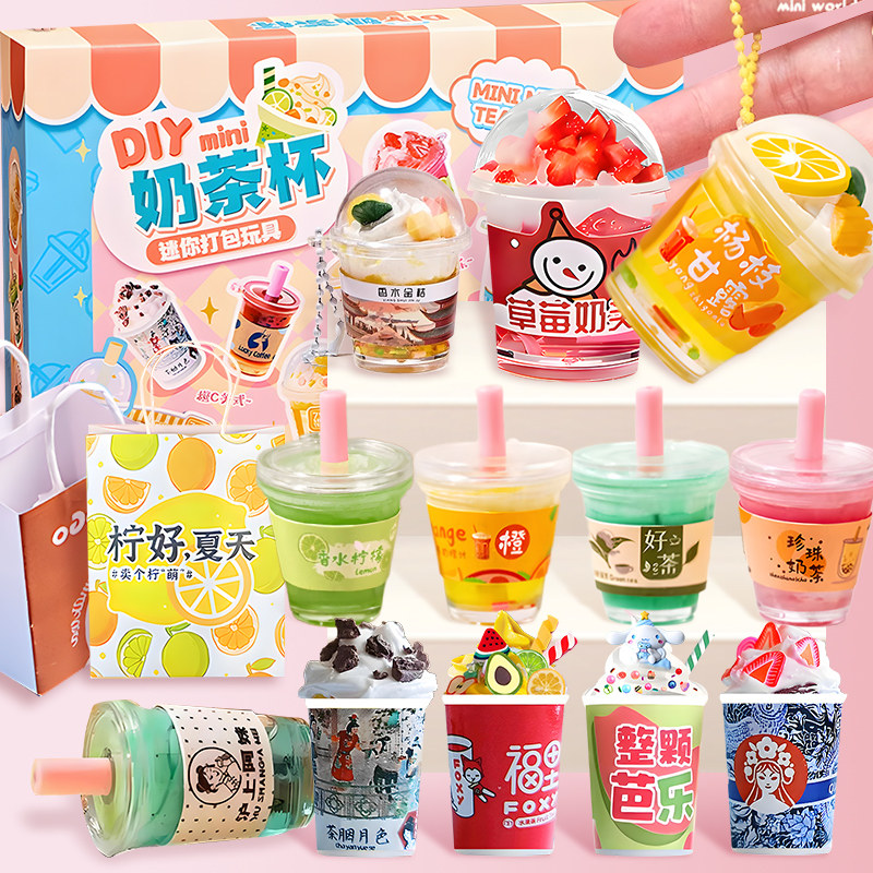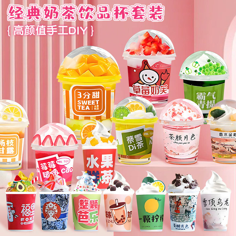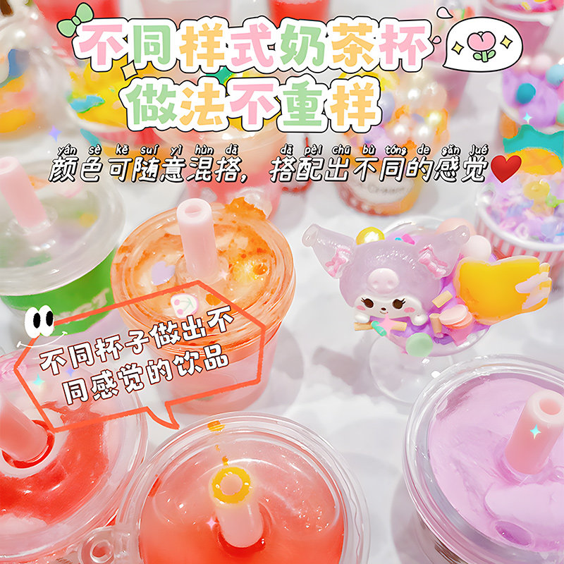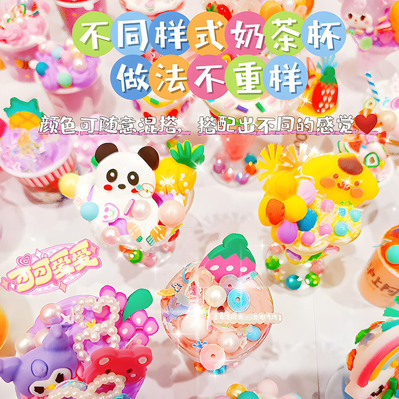 diy迷你奶茶杯儿童手工玩具材料包奶油胶女孩子套装小学生小女孩儿童diy奶茶杯玩具自制奶油胶女孩创意手工粘