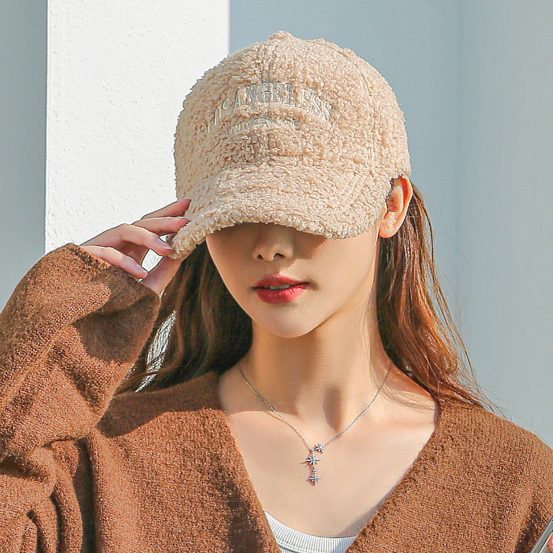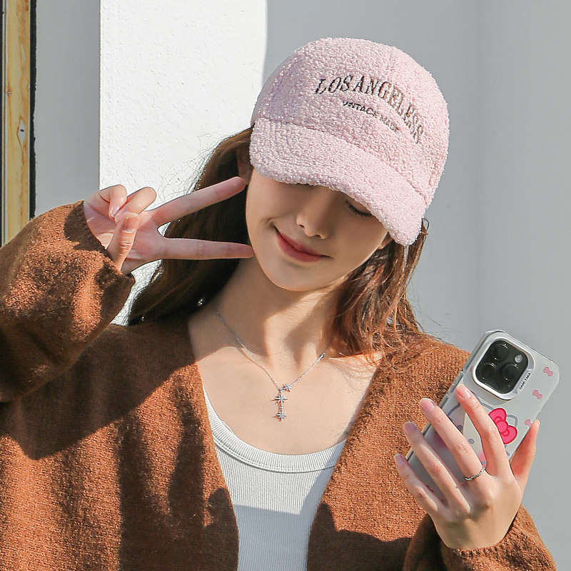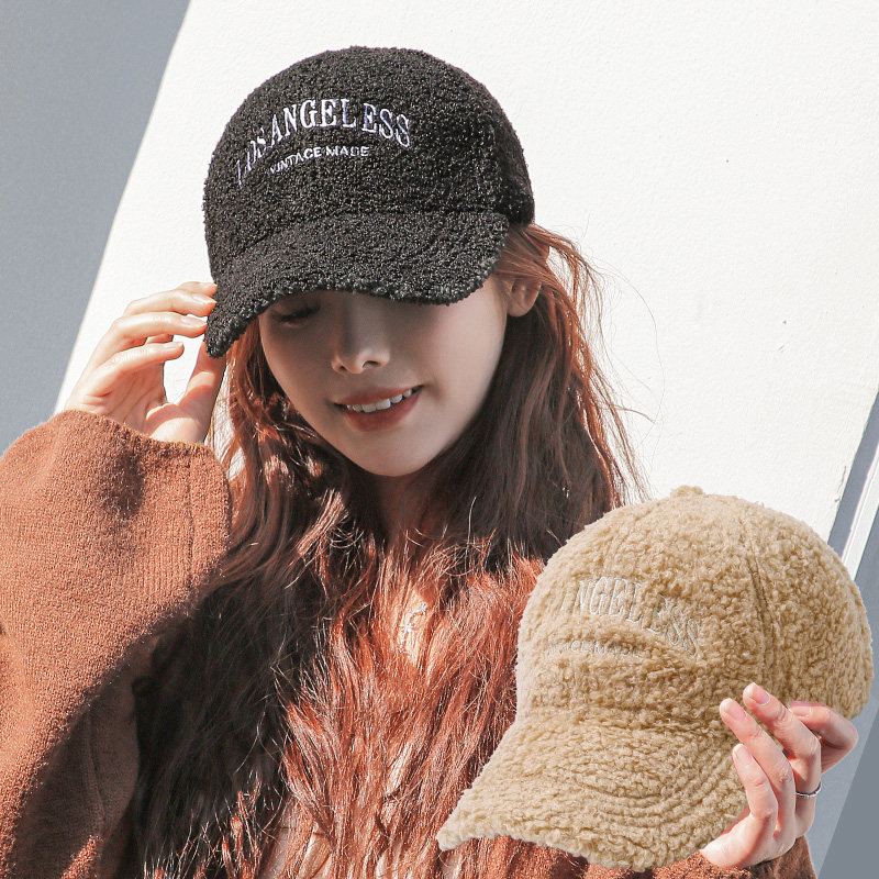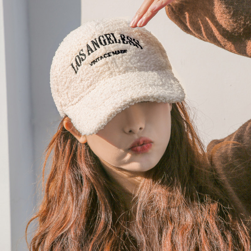 新款羊羔毛帽子女士秋冬季时尚百搭毛绒鸭舌帽加厚保暖棉帽棒球帽