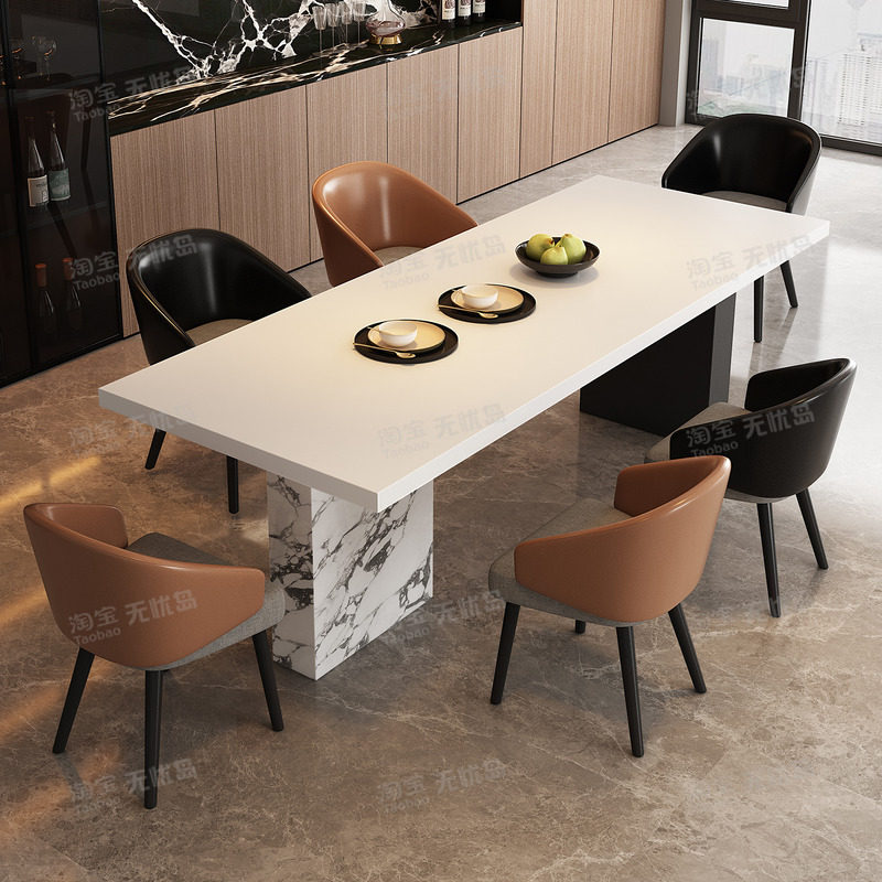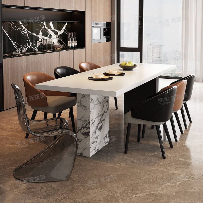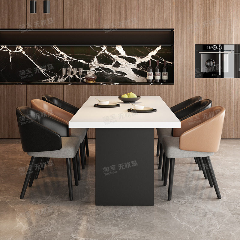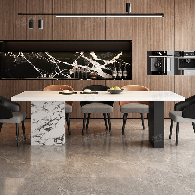 意式轻奢宝格丽下挂岩板餐桌椅组合家用小户型高级感长方形吃饭桌