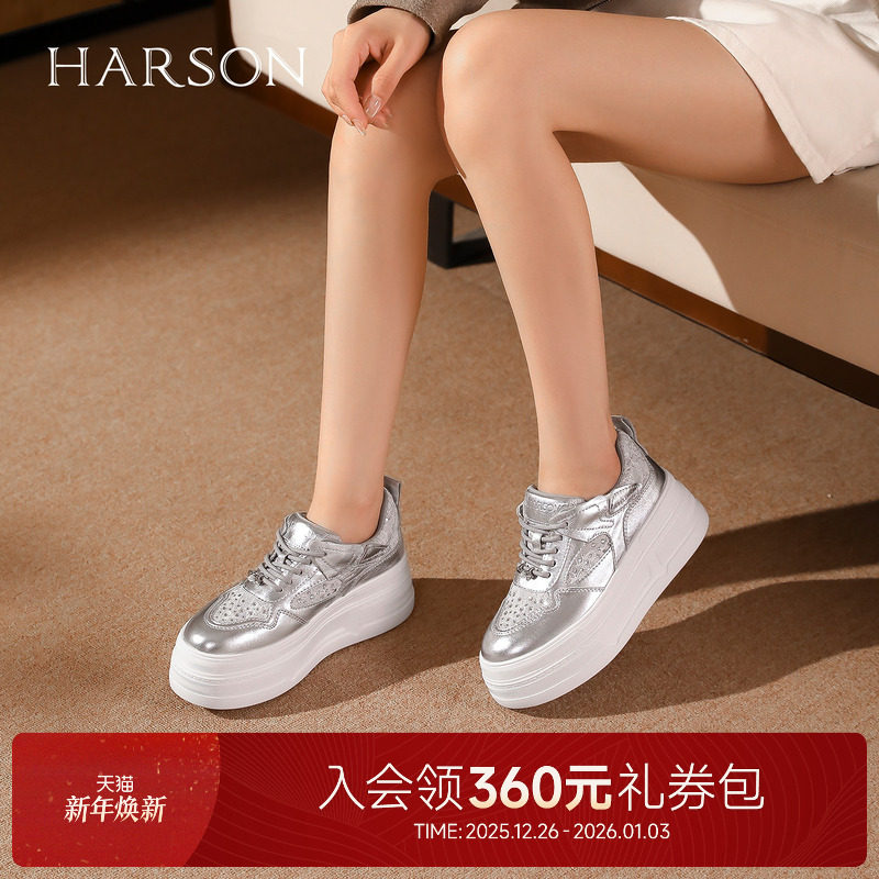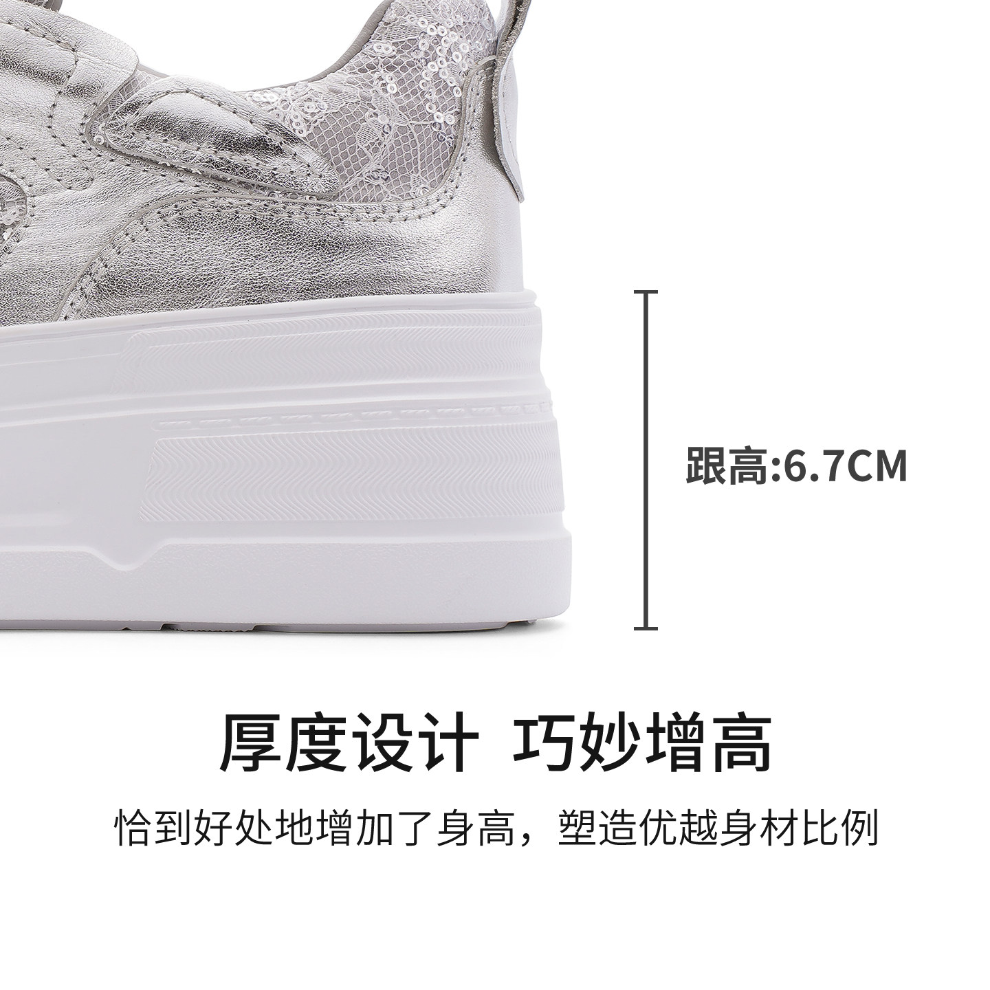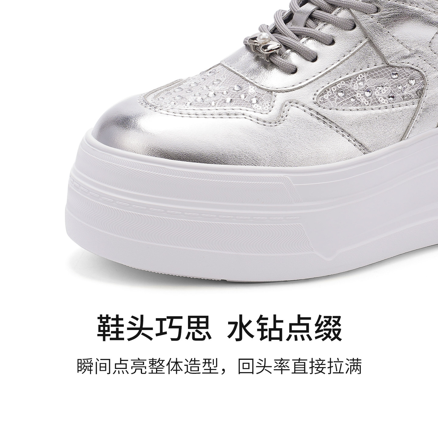 哈森休闲厚底增高水钻透气板鞋松糕底小白鞋女2026新款HCS268407