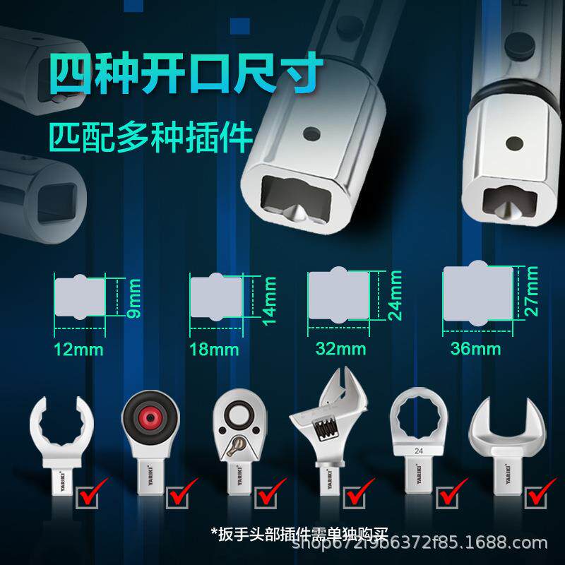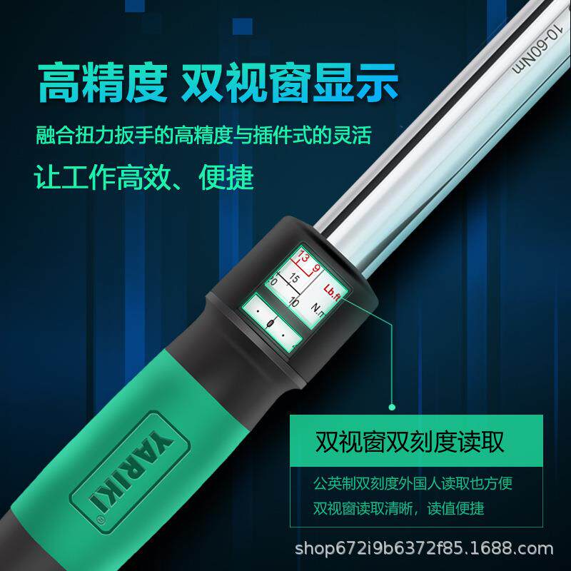 雅瑞克双视窗扭矩扳手可调凹方孔插件式 高精度公英制双刻度工具