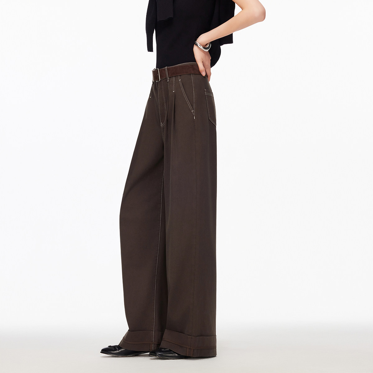 森柔牛仔|商场同款森马牛仔裤女翻边长裤2025秋季新款宽松阔腿裤