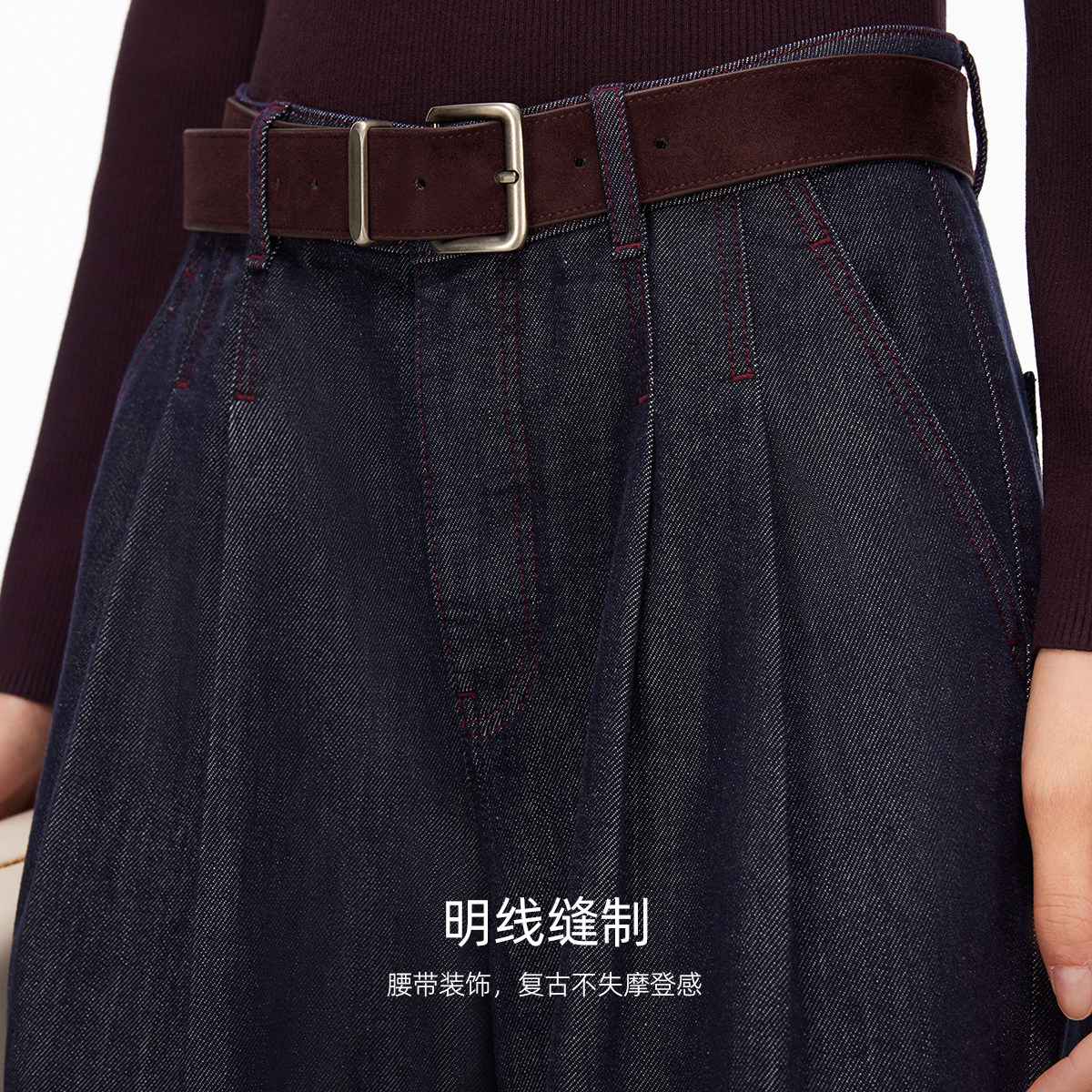 三福牛仔长裤2025新款冬季磨毛阔腿裤复古深色宽松裤子女装512304