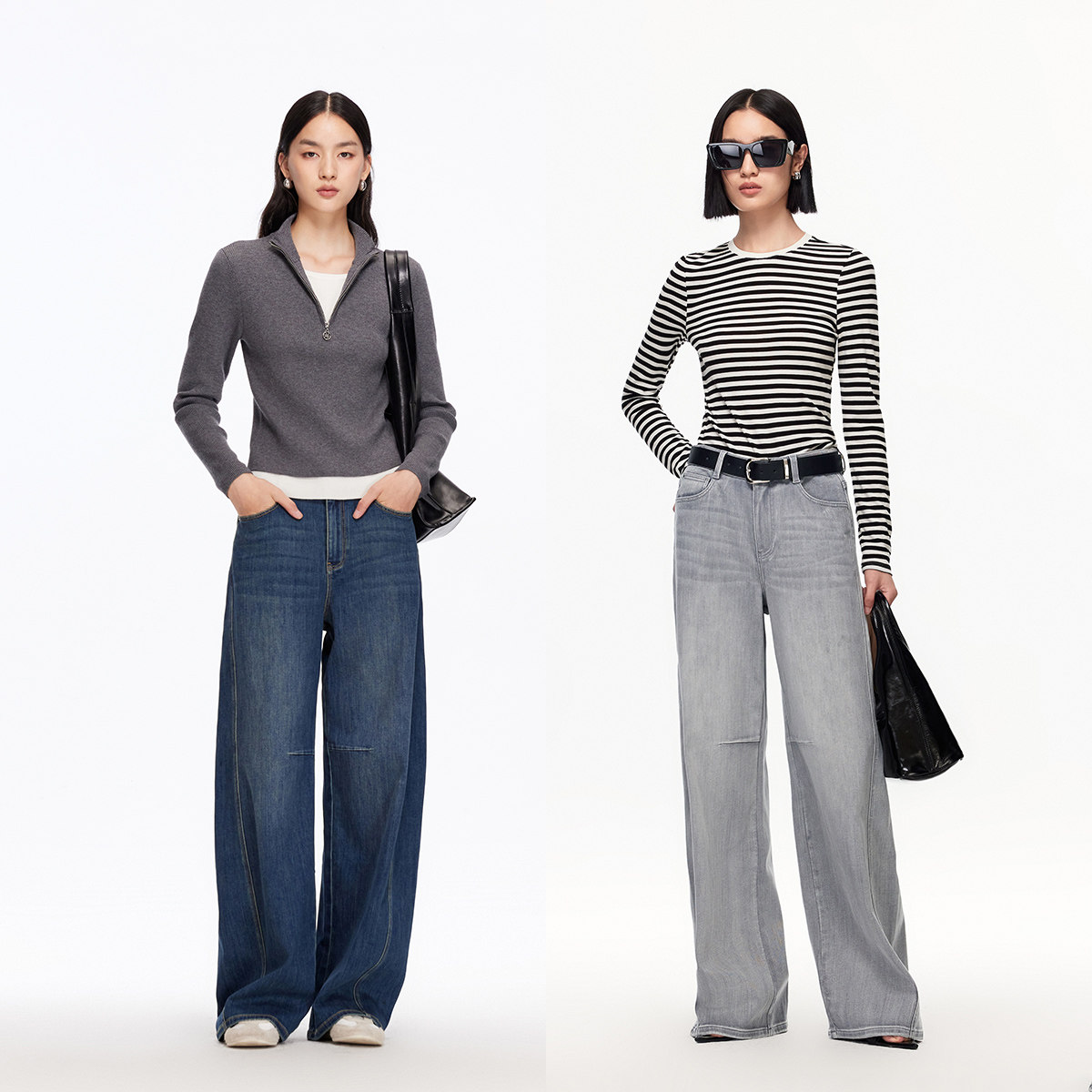 森柔牛仔|商场同款森马牛仔裤女翻边长裤2025秋季新款宽松阔腿裤