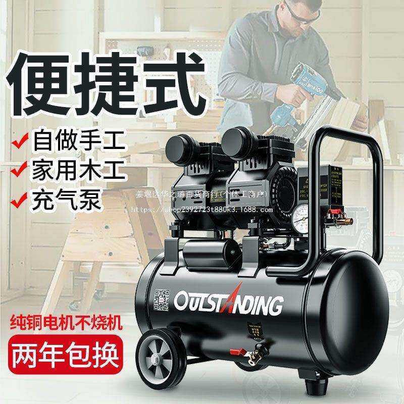 奥突斯小型空压机高压空气压缩充气泵无油静音220V工具喷漆冲气泵