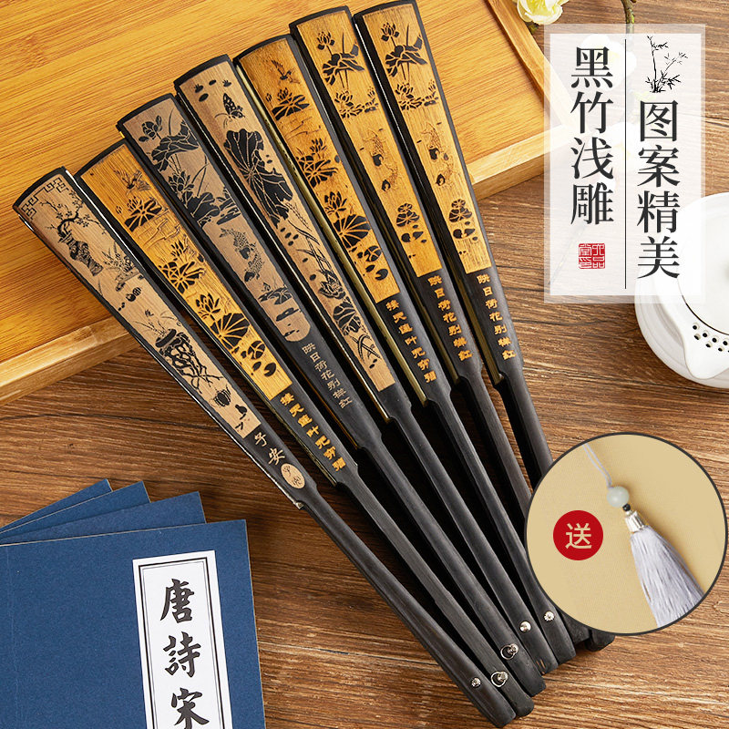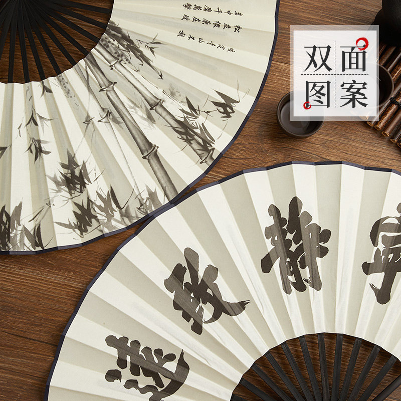 10寸古风扇子折扇中国风男士款夏季绢布折叠夏天竹扇汉服随身扇子