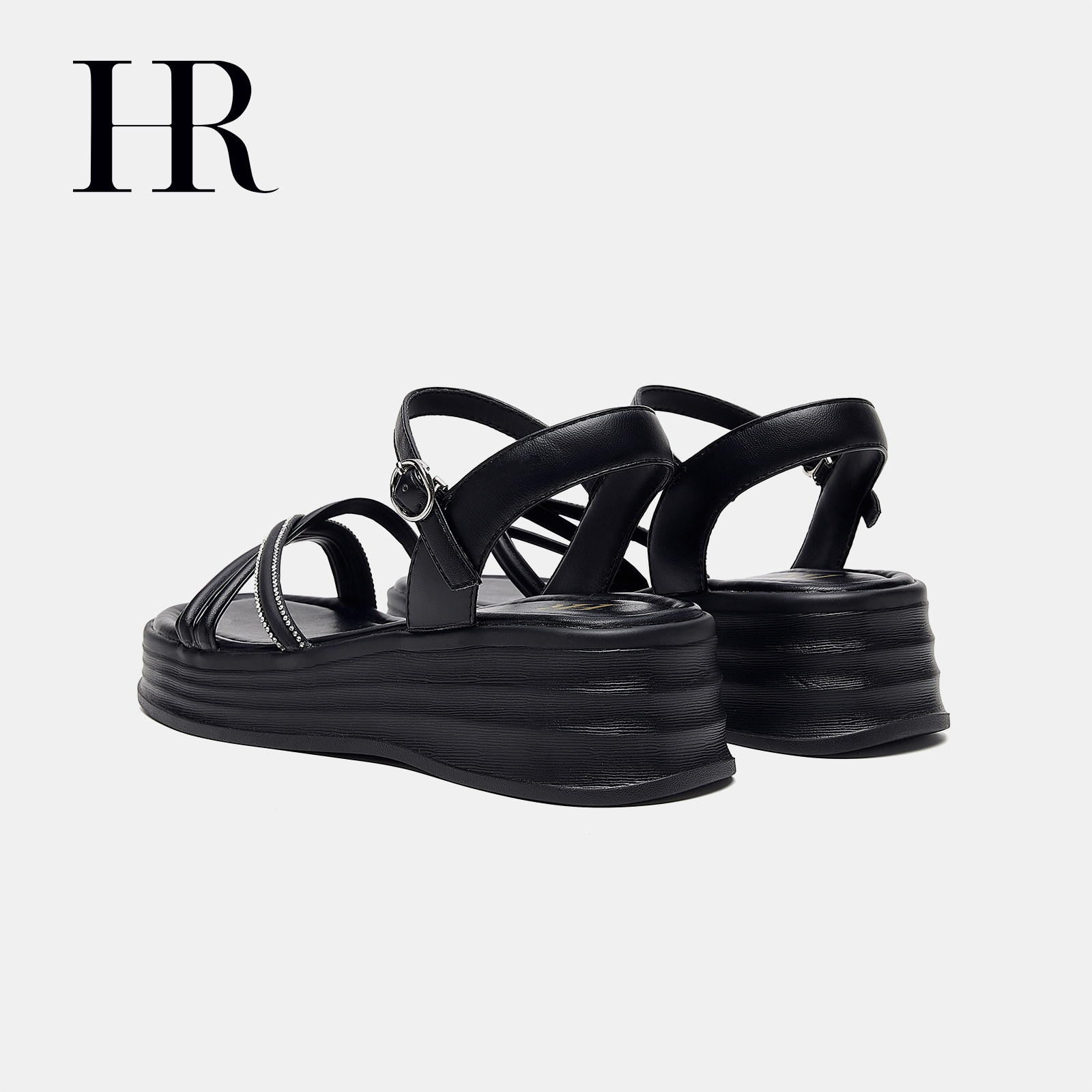 HR赫莲娜水钻一字带凉鞋2026夏季新款女鞋子坡跟时尚交叉绑带凉鞋