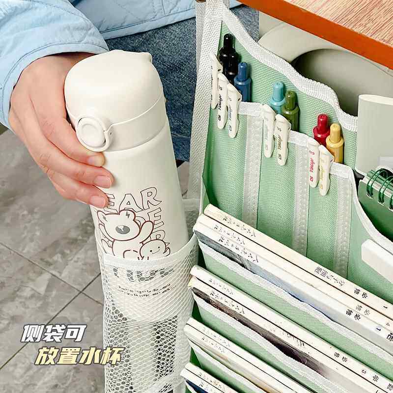 简约棋盘格挂书袋课桌收纳学生书桌收纳神器书本高中生装放书神器桌边书袋挂袋初中生大容量课桌侧挂书袋