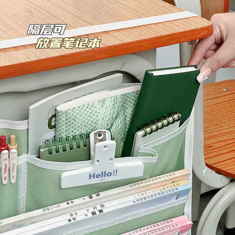 简约棋盘格挂书袋课桌收纳学生书桌收纳神器