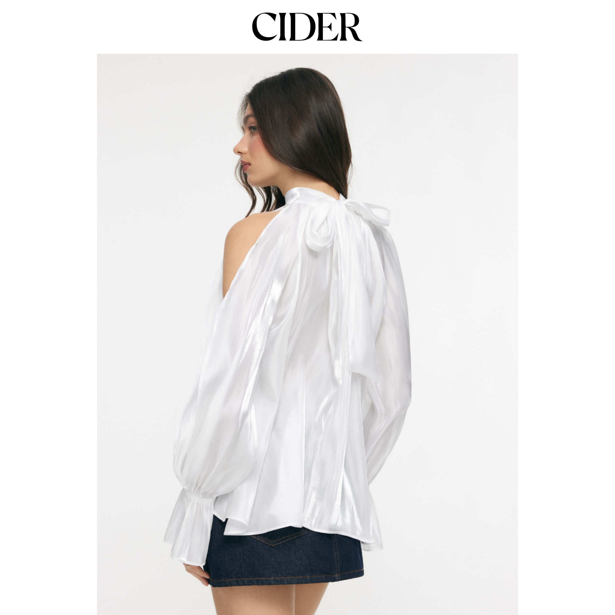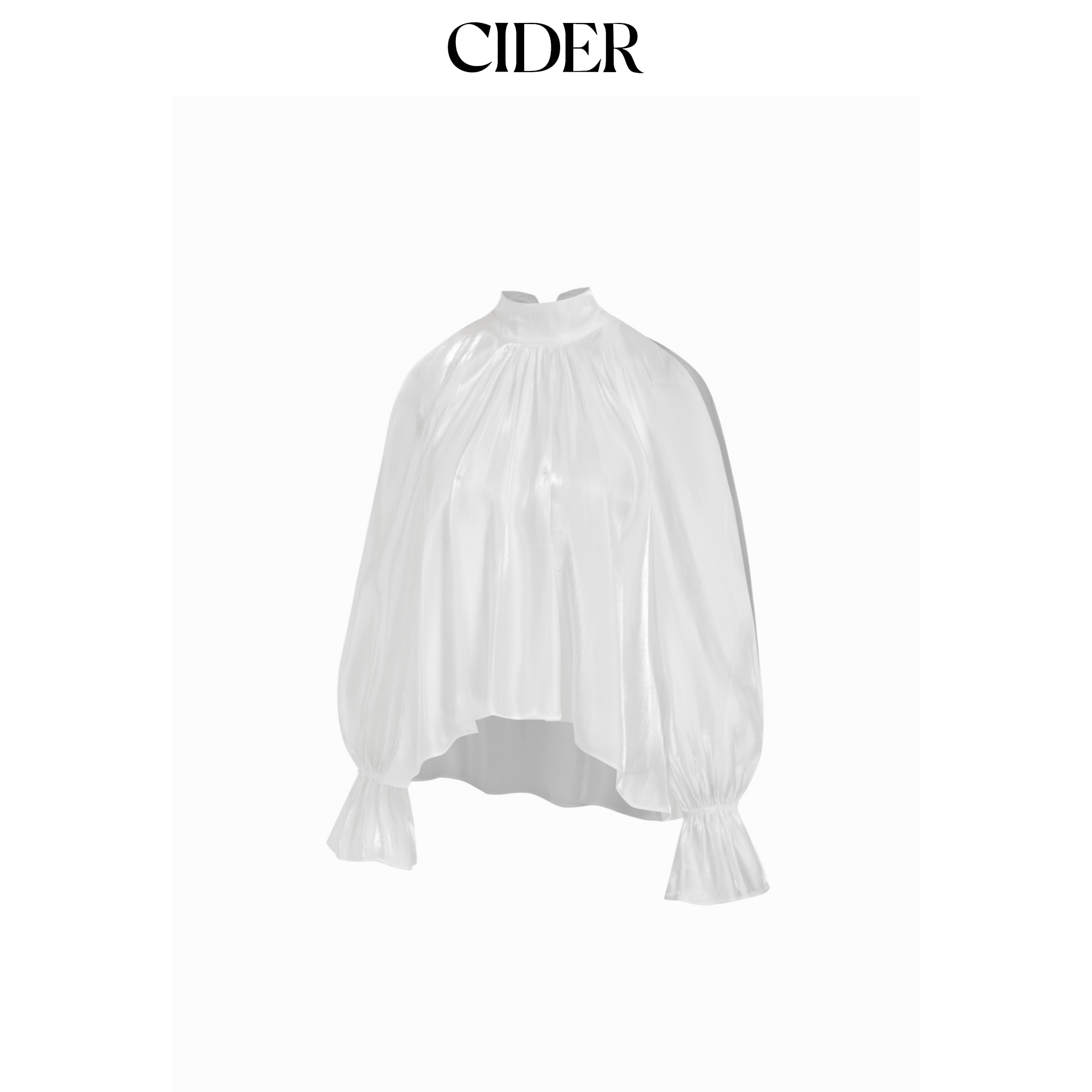 CIDER缎面高领荷叶领结插肩袖宽松上衣115180533