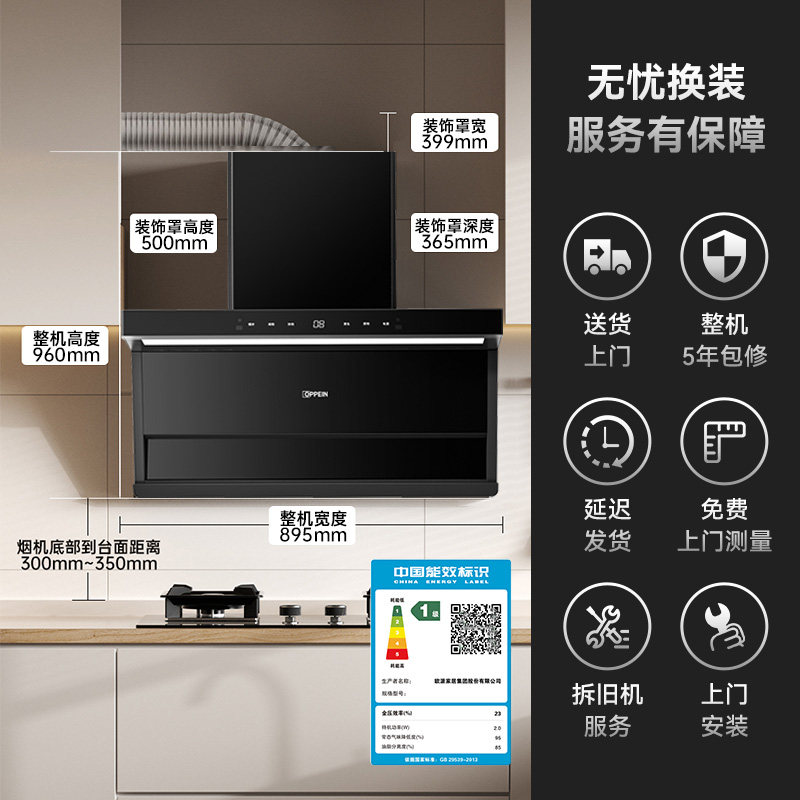 欧派(OPPEIN)抽油烟机28m³大吸力家用顶侧双吸油烟机烟灶套装210