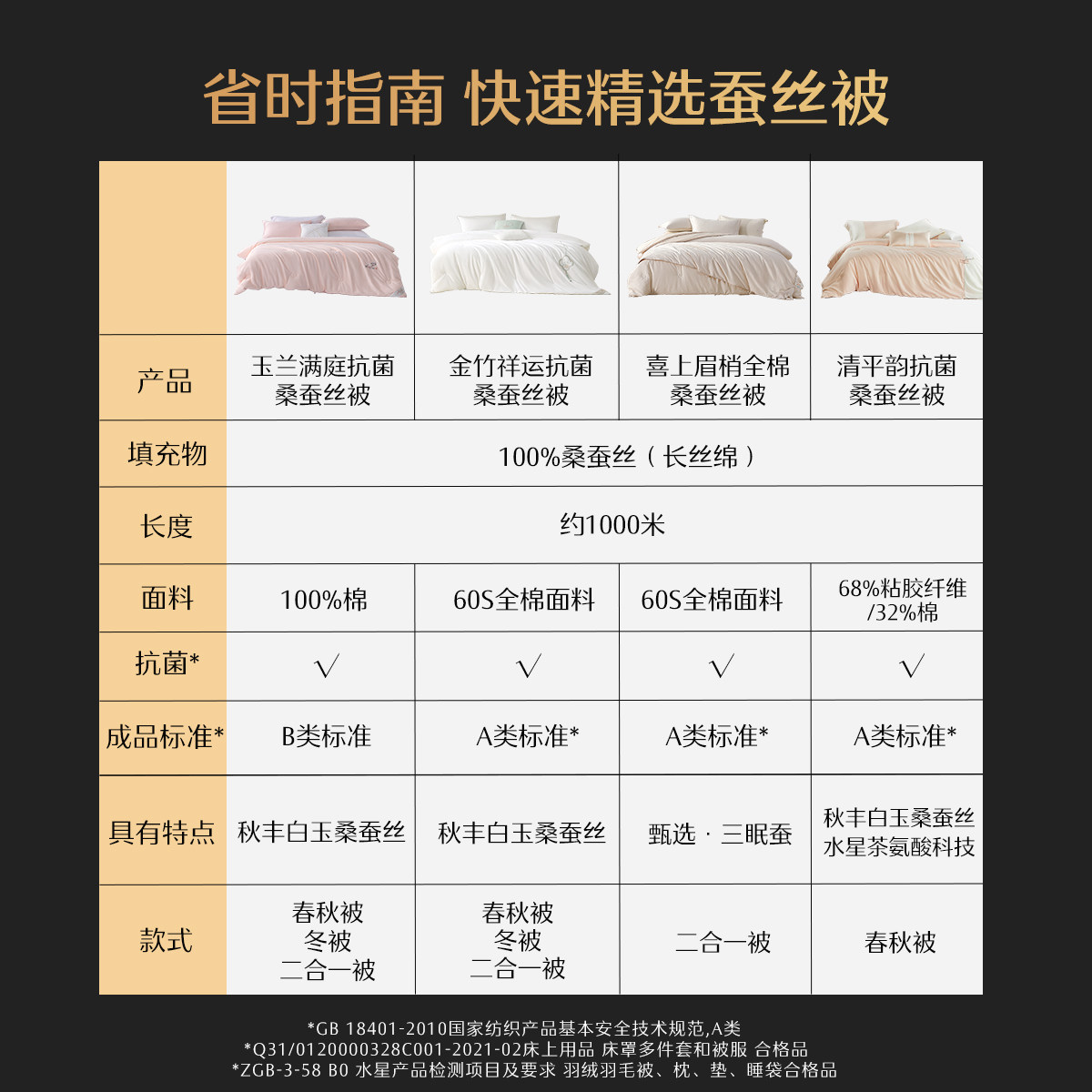 水星家纺100%桑蚕丝被冬被抗菌子母被春秋被二合一婚庆被保暖被芯