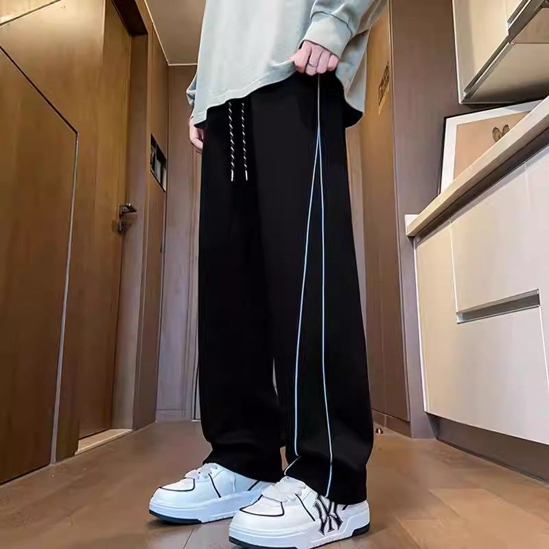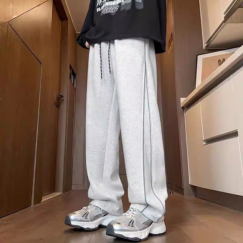 Hipanda你好熊猫秋冬新款宽松卫裤休闲长裤男女同款直筒裤阔腿裤