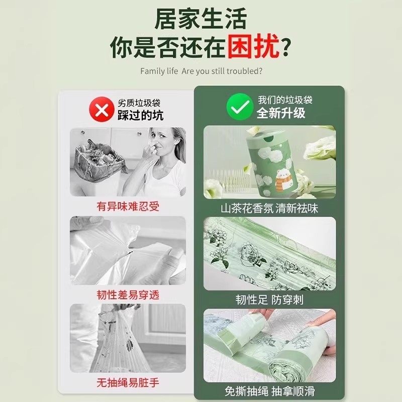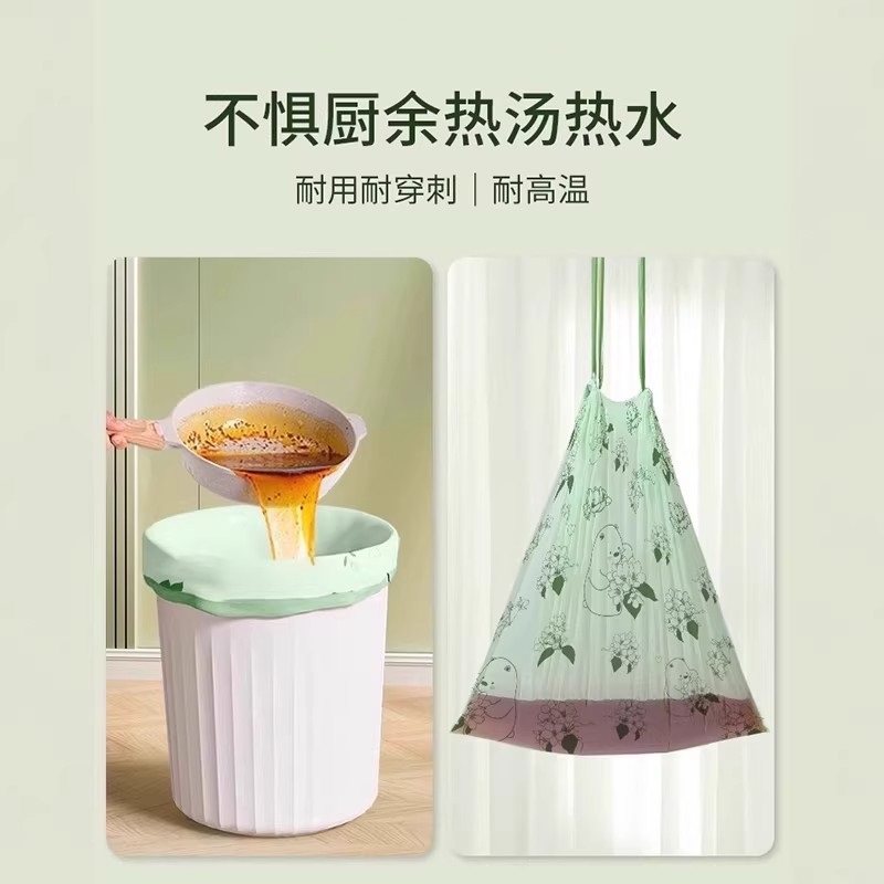 山茶花印花抽绳垃圾袋家用清洁袋塑料抽绳款垃圾袋宿舍日常袋子
