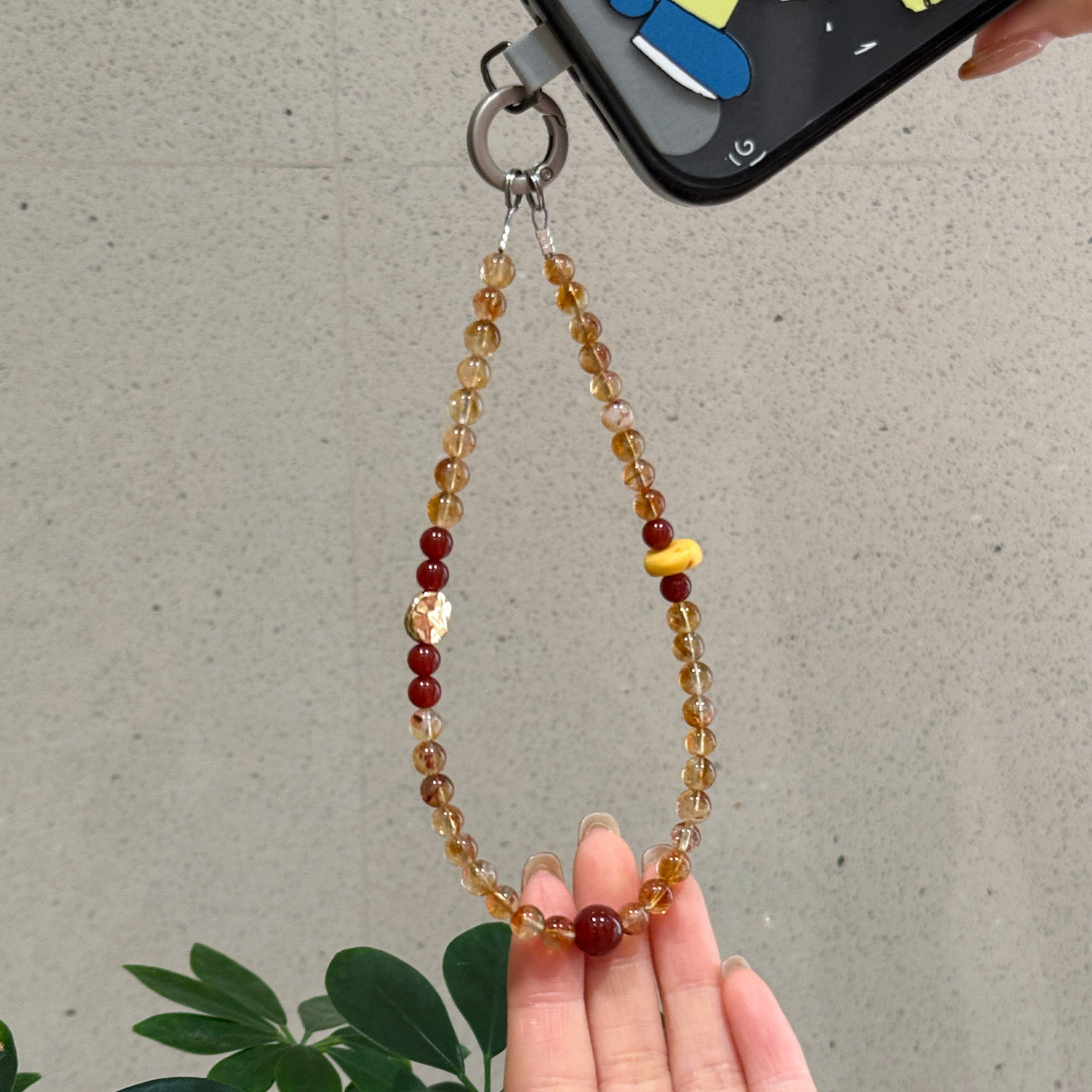 天然南红玛瑙水晶手机链垫片黄塔晶蜜蜡手链轻奢小众精致手机链