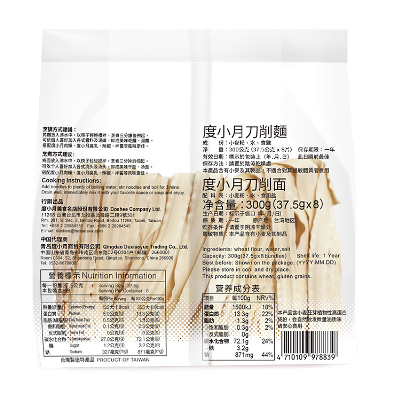 台湾度小月关庙面刀削面担仔面条耐煮早餐挂面油泼面烩面速食袋装