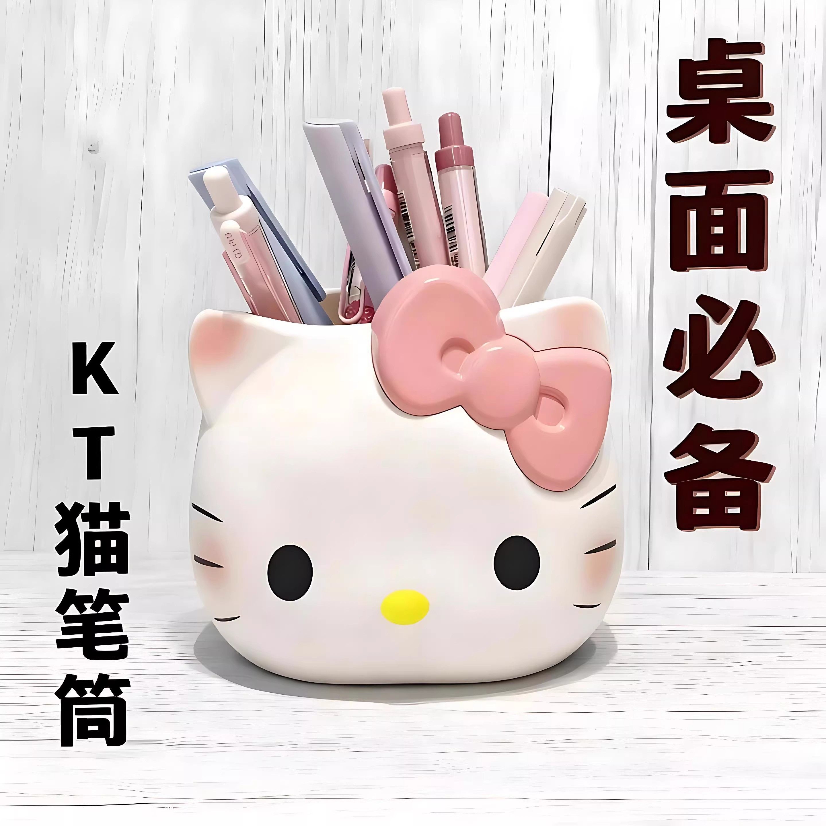 卡通KT猫笔筒收纳摆件可爱有趣收纳盒多功能笔筒化妆品办公室收纳