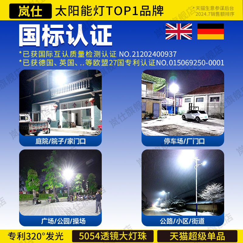 太阳能户外灯家用庭院灯2025新款超亮LED大功率农村强光照明路灯