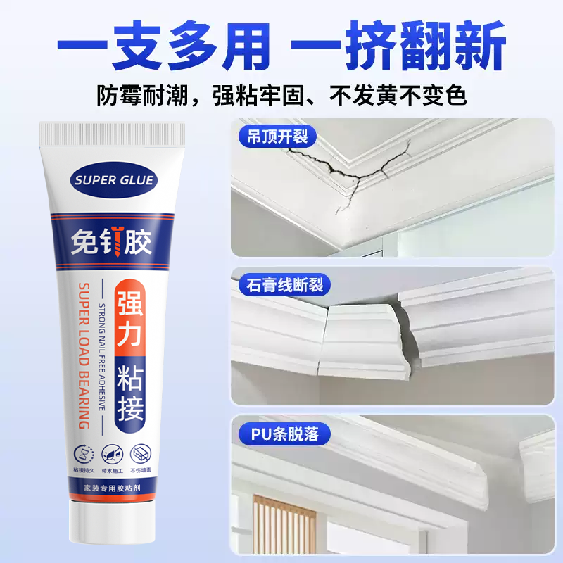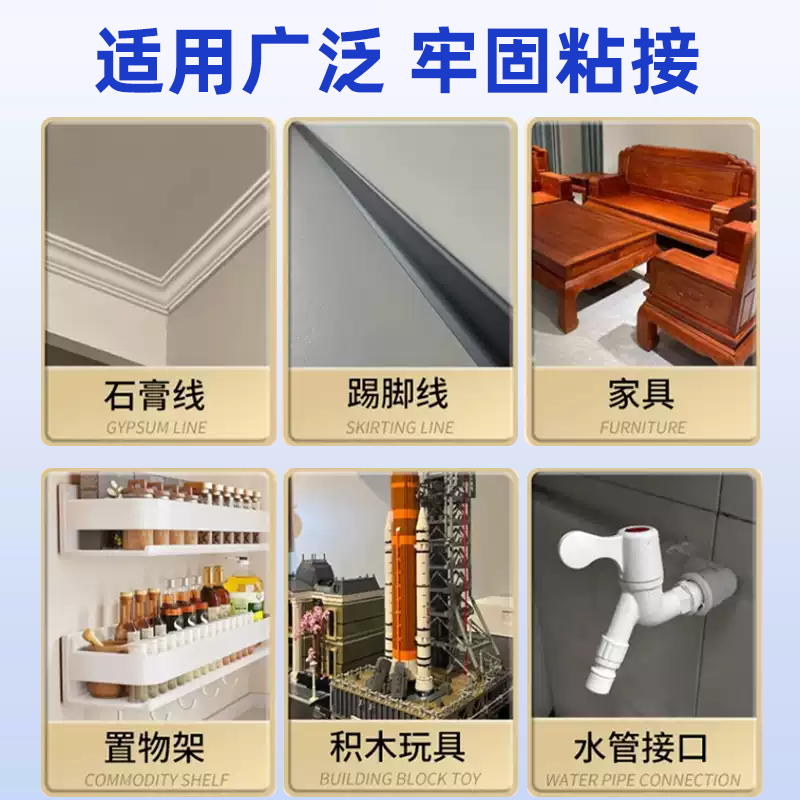 免钉胶强力胶瓷砖免打孔粘胶透明玻璃胶水置物架踢脚线木工吊顶石膏线专用