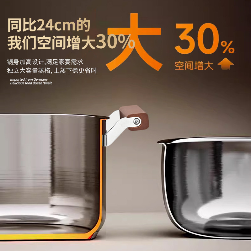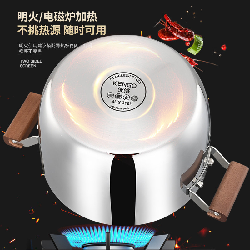 铿锵316L不锈钢汤锅加厚家用大容量双耳煮粥锅电磁炉燃气通用炖锅