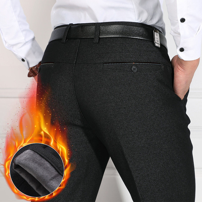 罗蒙加绒加厚男士休闲裤商务休闲秋冬季新款弹力直筒西裤秋冬款