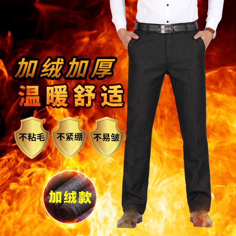 冬季男士爸爸加绒裤子保暖宽松休闲裤男款中老年人加厚西装裤外穿