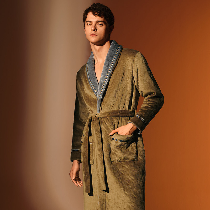 安莉芳旗下IVU2025年秋冬男士长袖翻领开衫加绒家居服睡袍UL00195
