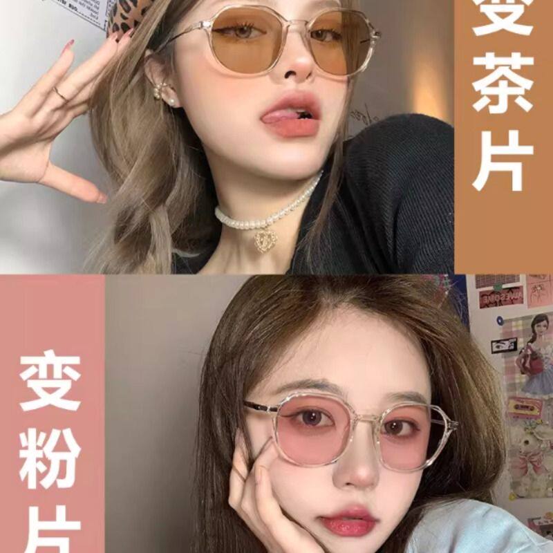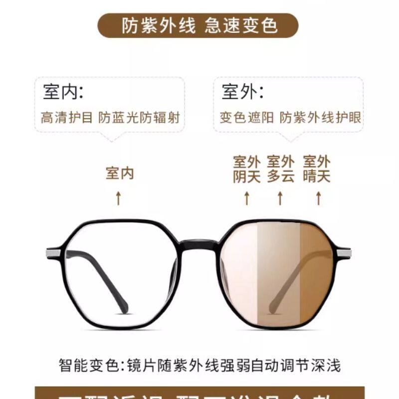 智能感光变色眼镜女款近视有度数黑框茶色墨镜防紫外线强光太阳镜