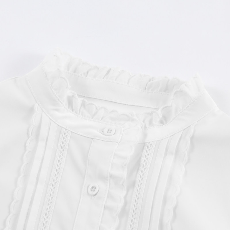 【抗菌抗皱】LAGOGO法式木耳边白衬衫女士拉谷谷26春长袖立领上衣