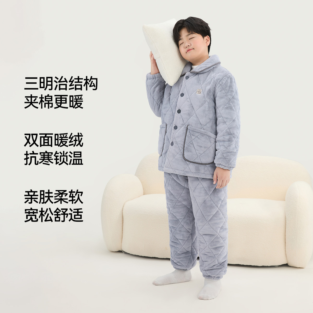 【法兰绒睡衣】小猪托尼胖男童家居服套装加厚中大童可外穿保暖冬
