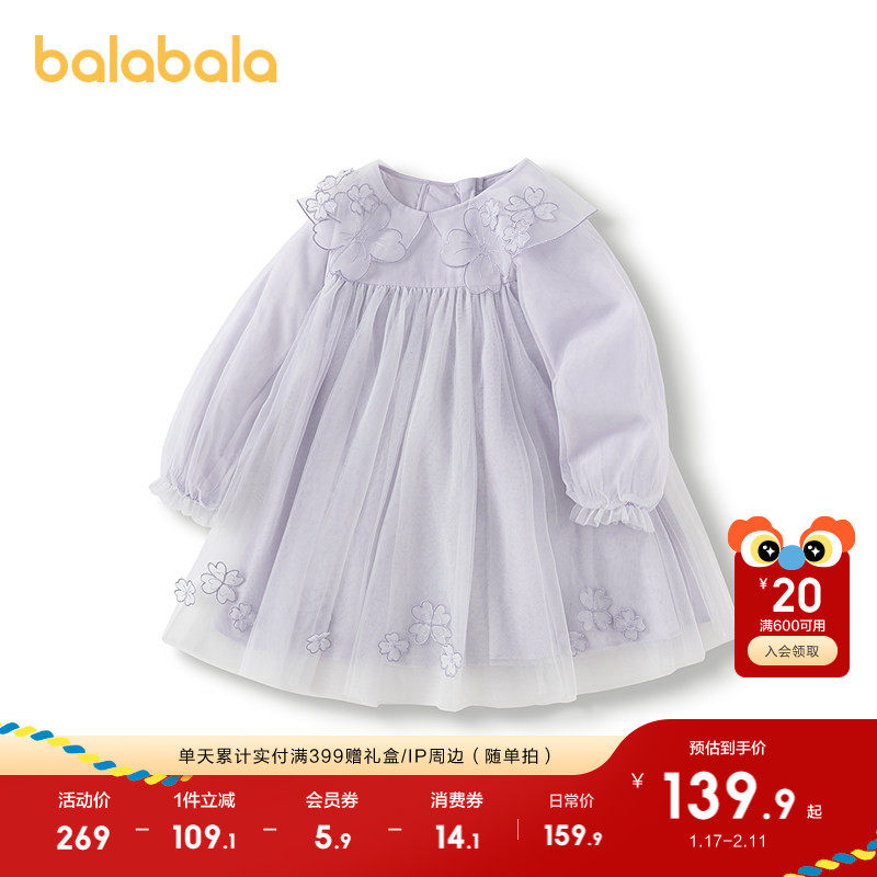 【balaOne】巴拉巴拉童装女童连衣裙2025新款春装网纱裙甜美洋气