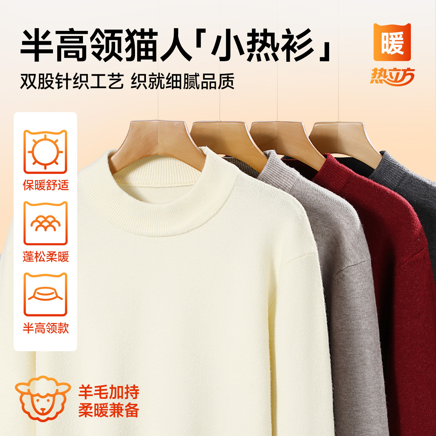 猫人半高领男士毛衣冬季厚保暖羊毛衫慵懒风2025新款纯色内搭男J