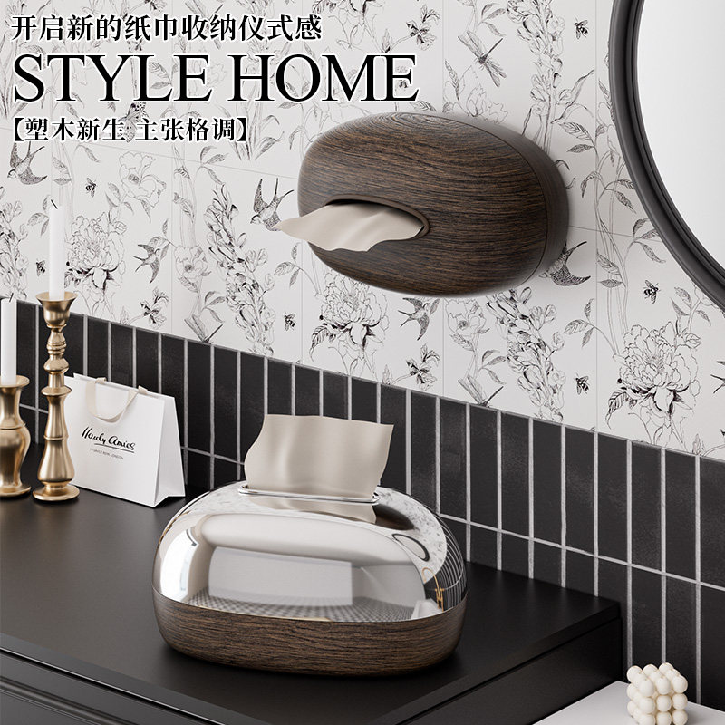 冰川纹洗脸巾收纳盒壁挂式纸巾盒家用轻奢风卫生间厨房倒挂抽纸盒