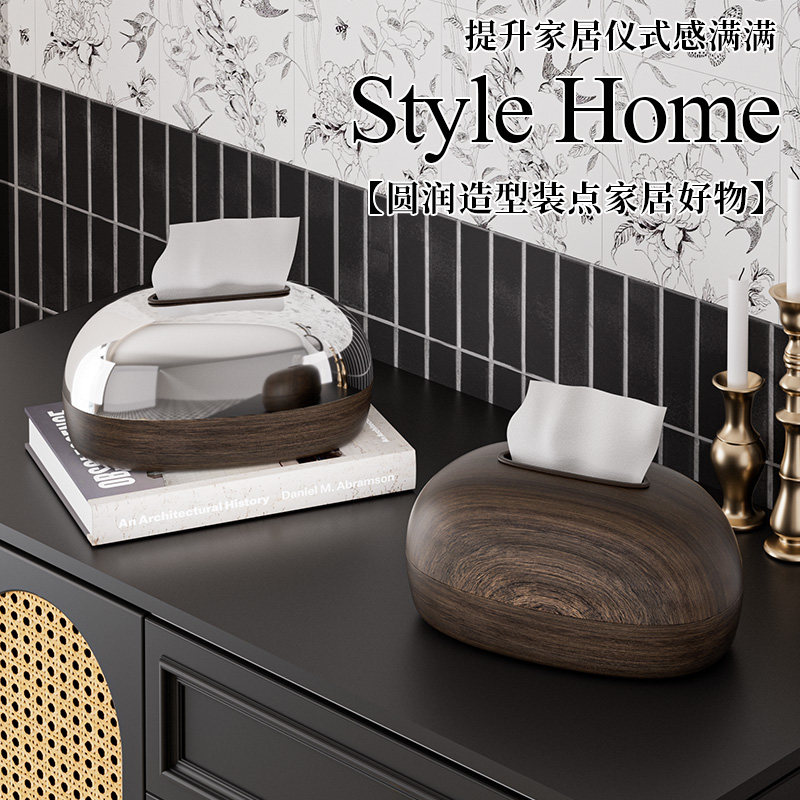 新款美拉德中古风纸巾盒车载抽纸盒多功能家用客厅餐厅纸巾收纳盒