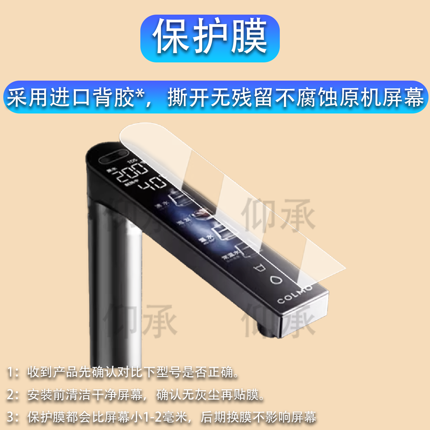 适用于COLMO黑珍珠水龙头贴膜净水器RC119保护膜厨下反渗透直饮 机rc119屏幕膜非钢化膜高清防刮花