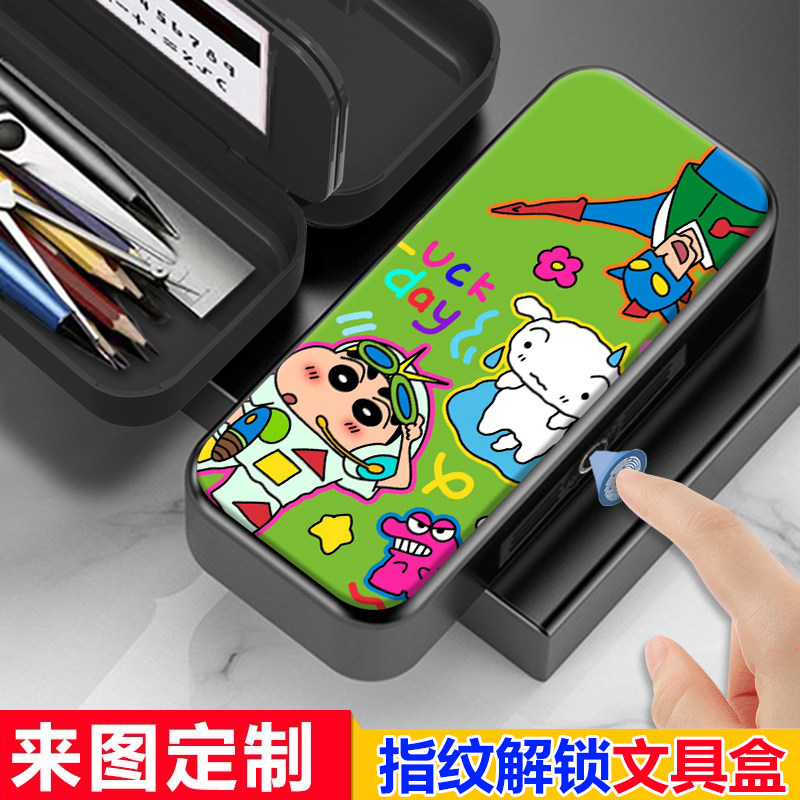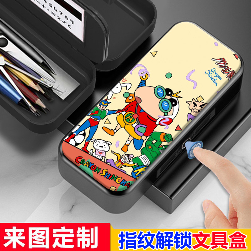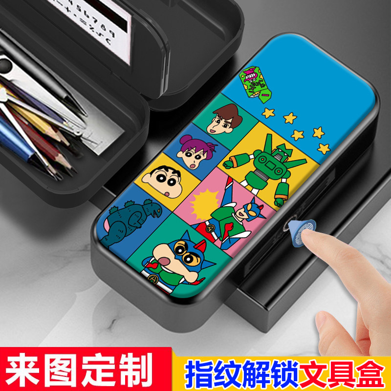 动感超人蜡笔小新指纹密码文具盒小学生用男孩多功能黑科技铅笔盒