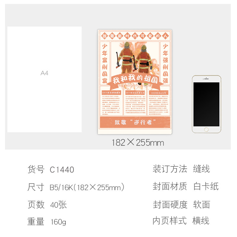 我和我的祖国笔记本文具16K/B5镂空车线本国庆节日爱国主题本子五四青年学生医生军人消防员记事本横线软面抄