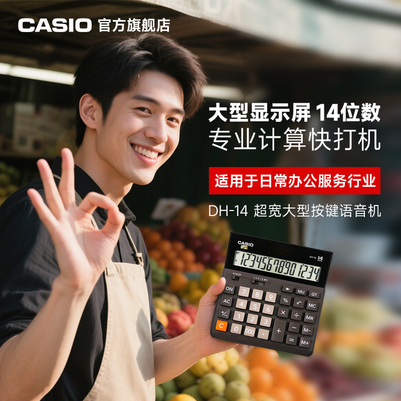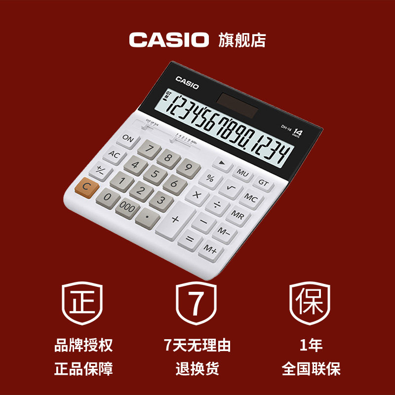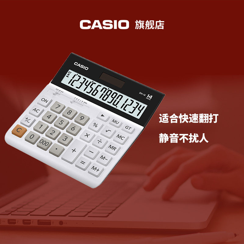 Casio/卡西欧DH-14超宽计算器办公用品文具商务太阳能现货包邮学生财务会计非语音计算机