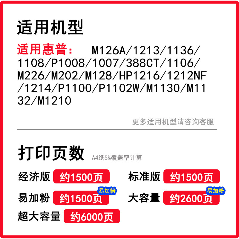 莱盛88a硒鼓 适用hp惠普m126a 1136 1108易加粉p1008 1007 1106 M226 M202 M128 1213 ls-cc388a碳粉墨盒1213