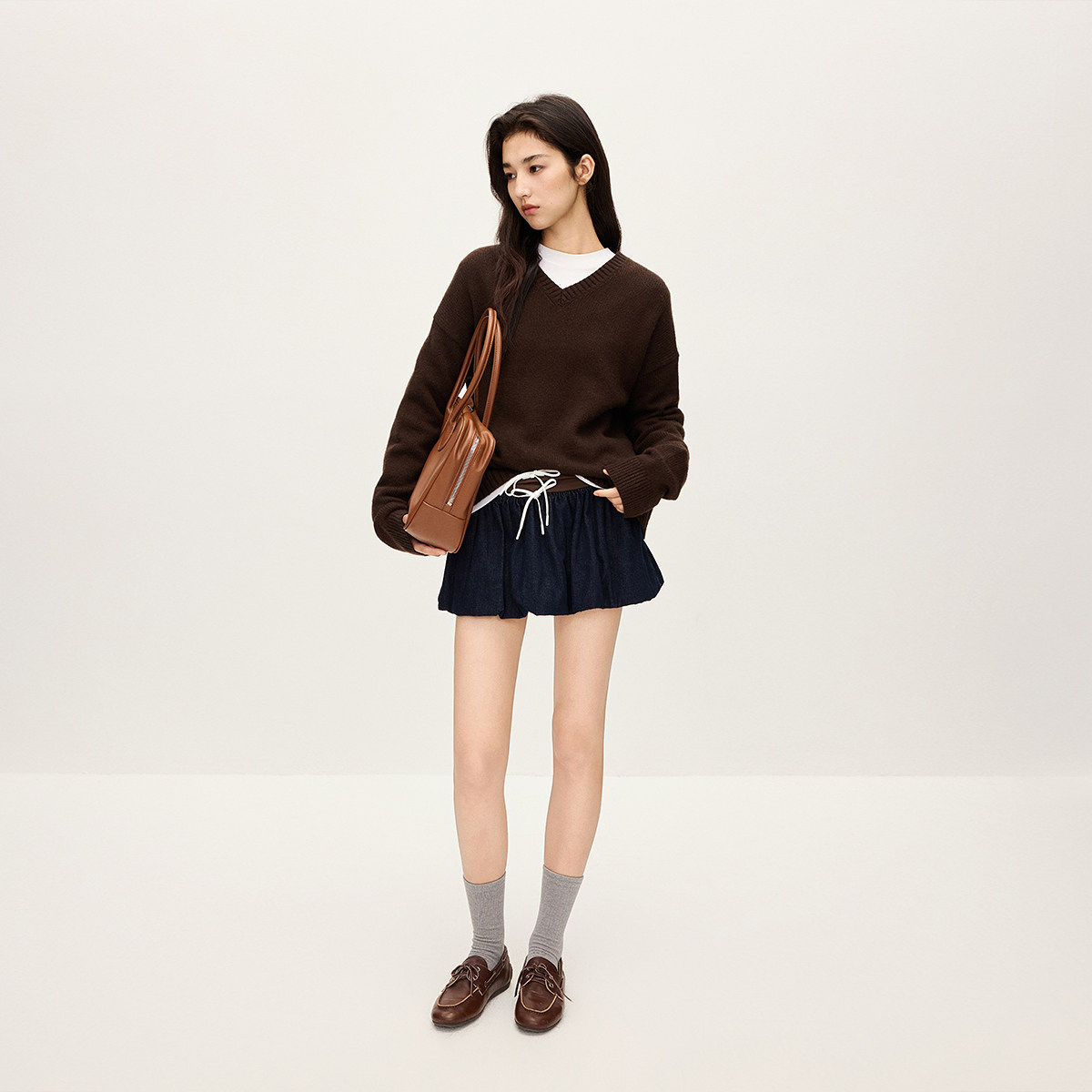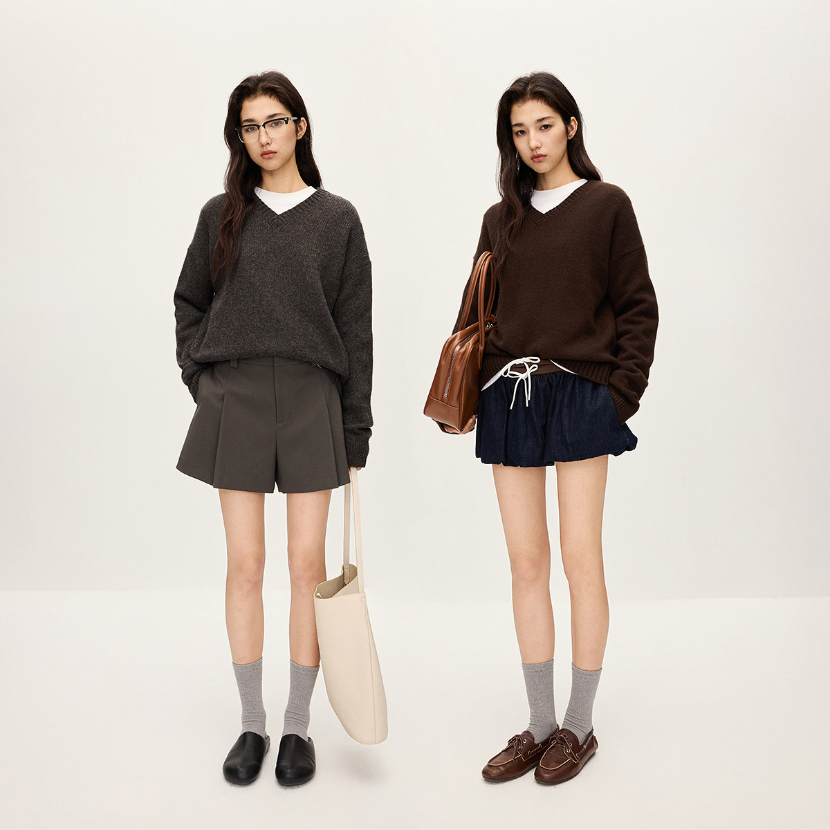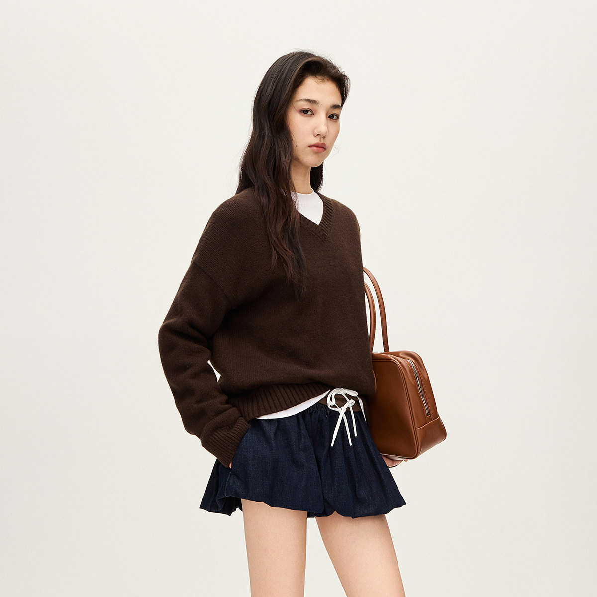 【季末折扣】欧时力 牦牛绒羊毛套头毛衣上衣保暖V领气质秋冬新品