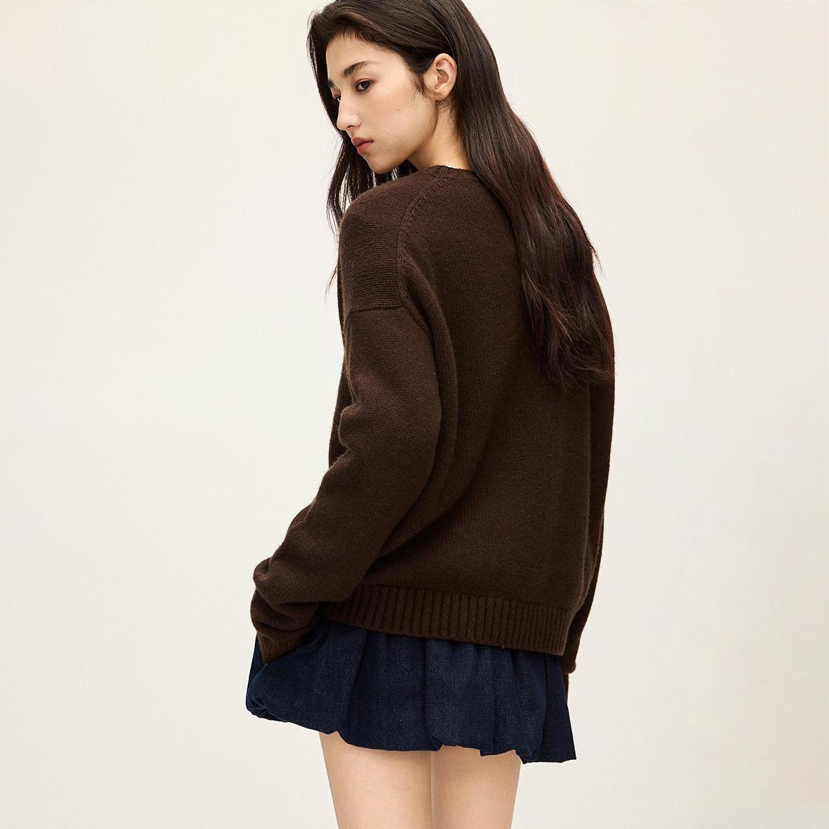 NVPVVA 秋冬百搭LOGO米粒绣圆领毛衣韩系宽松慵懒风针织衫上衣女
